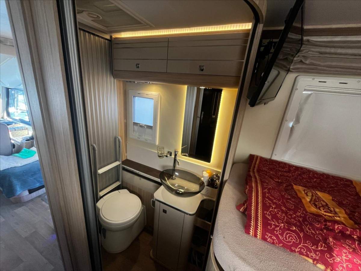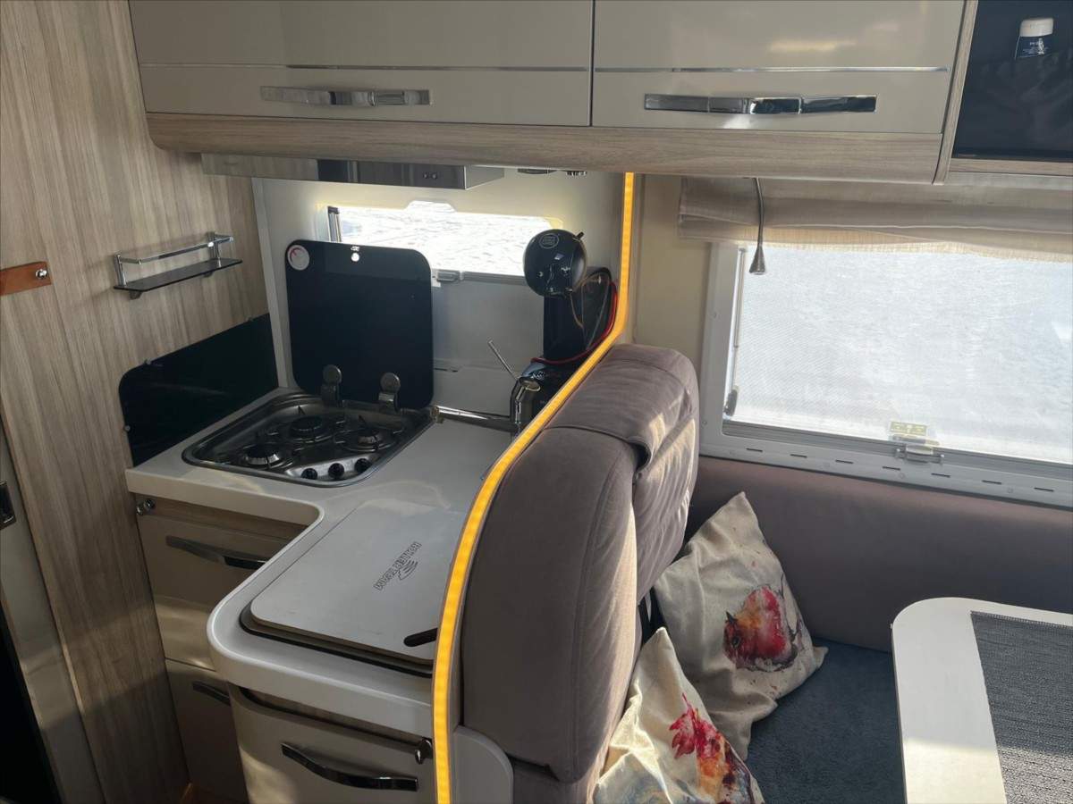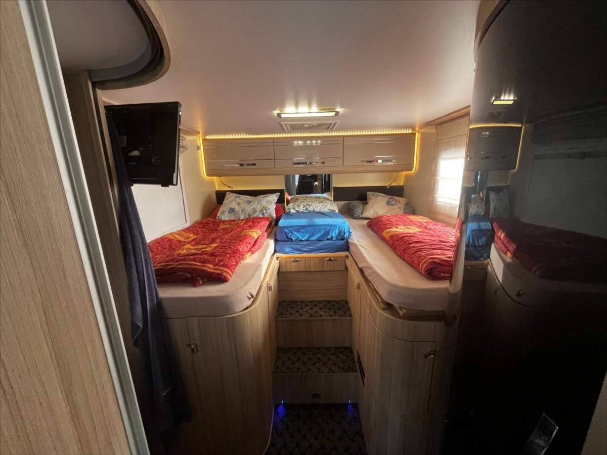 Třetí majitel; Leasing možný; Úvěr možný; Vůz koupen nový v CZ; nehavarovaný; garážovaný; pravidelný servis. Výhodné financování již od nulové akontace a bez zajištění nejen pro CZ a SK zájemce ale také pro UA klienty s trvalým pobytem. Odpočet DPH není. Rozměry: 7380/ 2320/ 2890. Tažné 2000kg. Truma topení; regulátor DuoControl; 2x TV; solární panely + měnič 2000w + LiFePO4 200Ah; Thule markýza 4; 5m; nosič kol či skůtru; rozvod USB + 220V; moskytiéry; přední rolety; oddělený mrazák; samostatná koupelna; kávovar; nádrž 120l. Nová STK.;