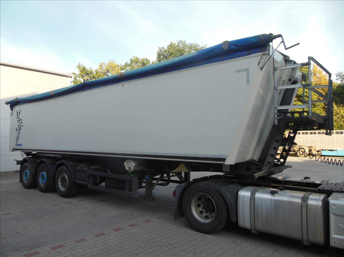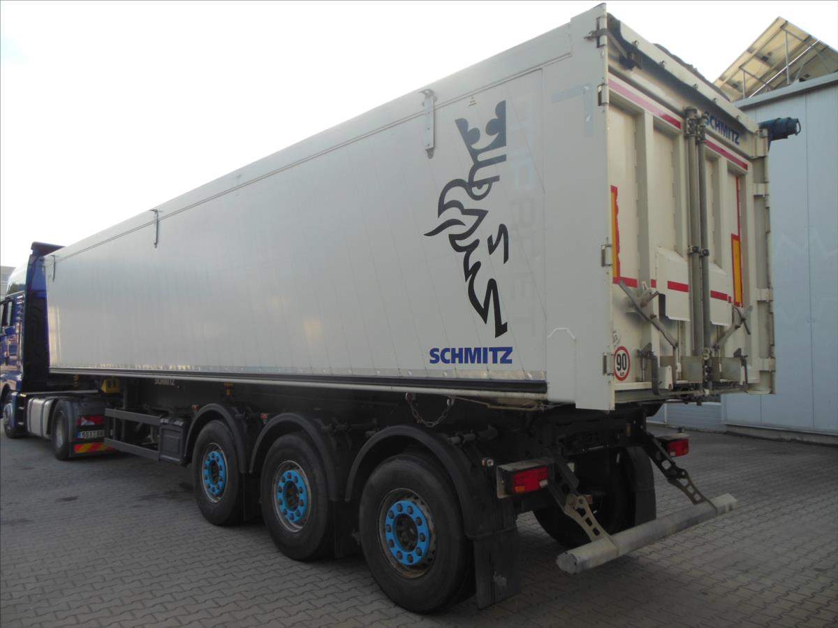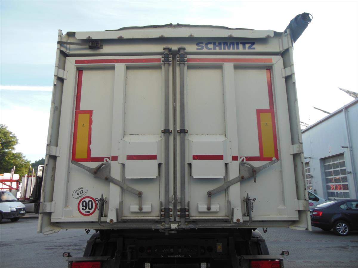 Návěs-sklápěč; Schmitz SKI 24; 51m3; Provoz 5/2020; zvedací náprava; nápravy Schmitz; ložná plocha 10500x2438x2000 mm; rozvor náprav 1420 mm; nápravy 9t; plachta; vrata; kotoučové brzdy; ABS; pneu 385/65 R22; 5 stav: 1 osa 6 mm; 2 osa 8 mm; 3 osa 8 mm; rezerva; Provozní hmotnost 6.560 kg; Celková hmotnost 39.000 kg.;