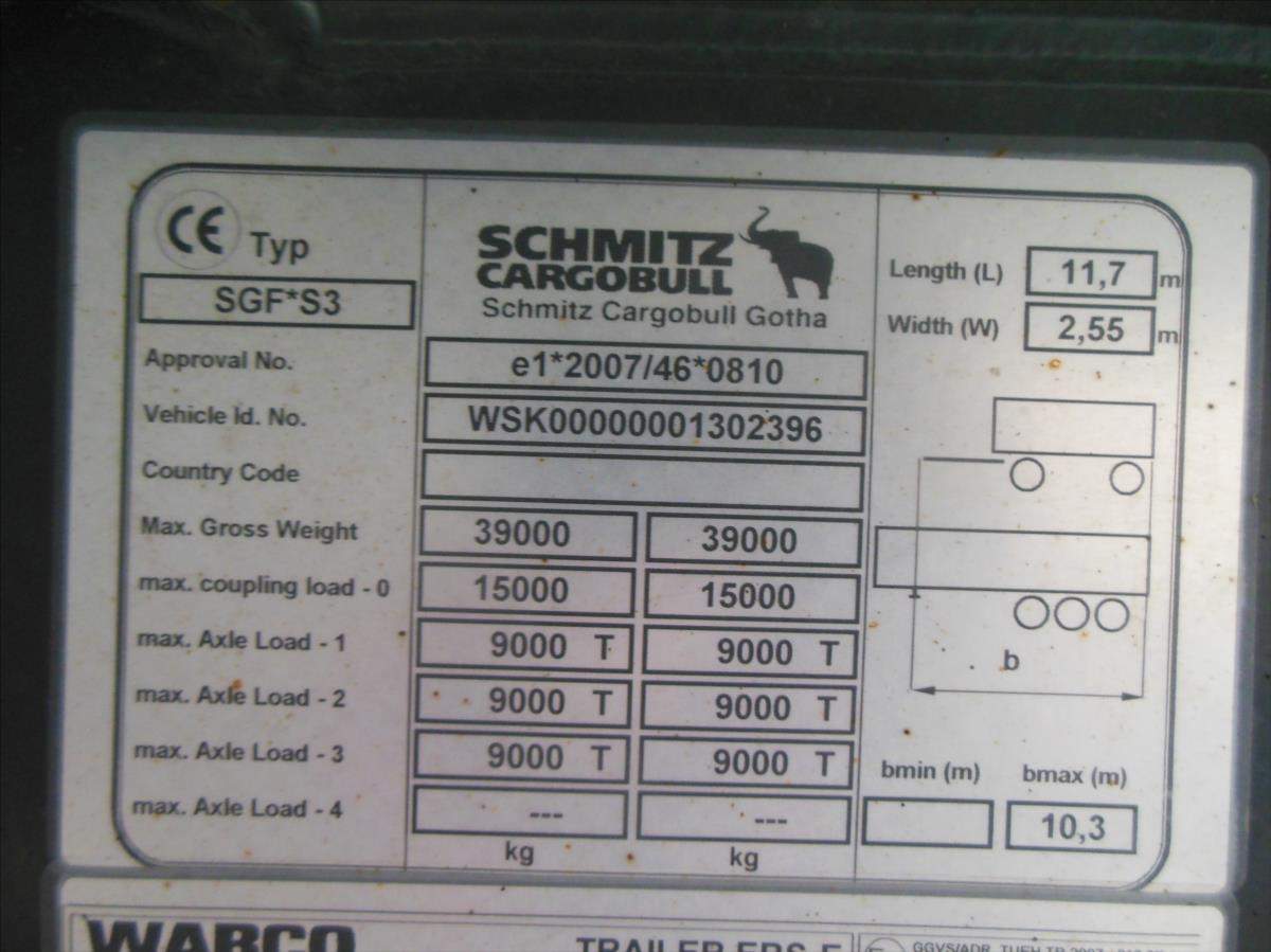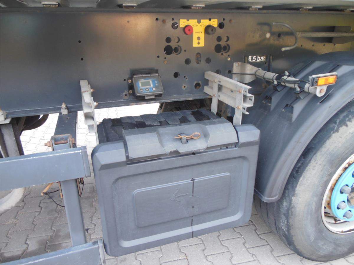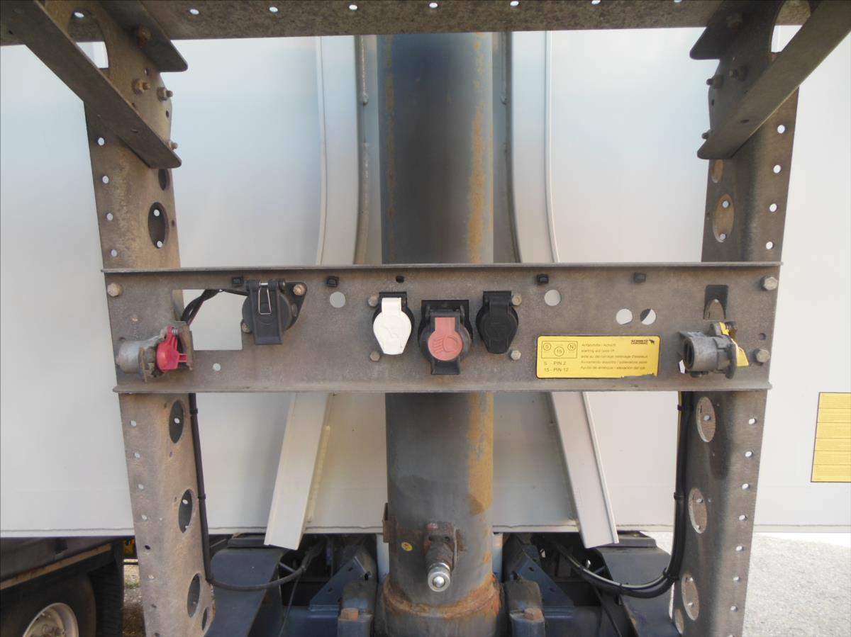 Návěs-sklápěč; Schmitz SKI 24; 51m3; Provoz 5/2020; zvedací náprava; nápravy Schmitz; ložná plocha 10500x2438x2000 mm; rozvor náprav 1420 mm; nápravy 9t; plachta; vrata; kotoučové brzdy; ABS; pneu 385/65 R22; 5 stav: 1 osa 6 mm; 2 osa 8 mm; 3 osa 8 mm; rezerva; Provozní hmotnost 6.560 kg; Celková hmotnost 39.000 kg.;