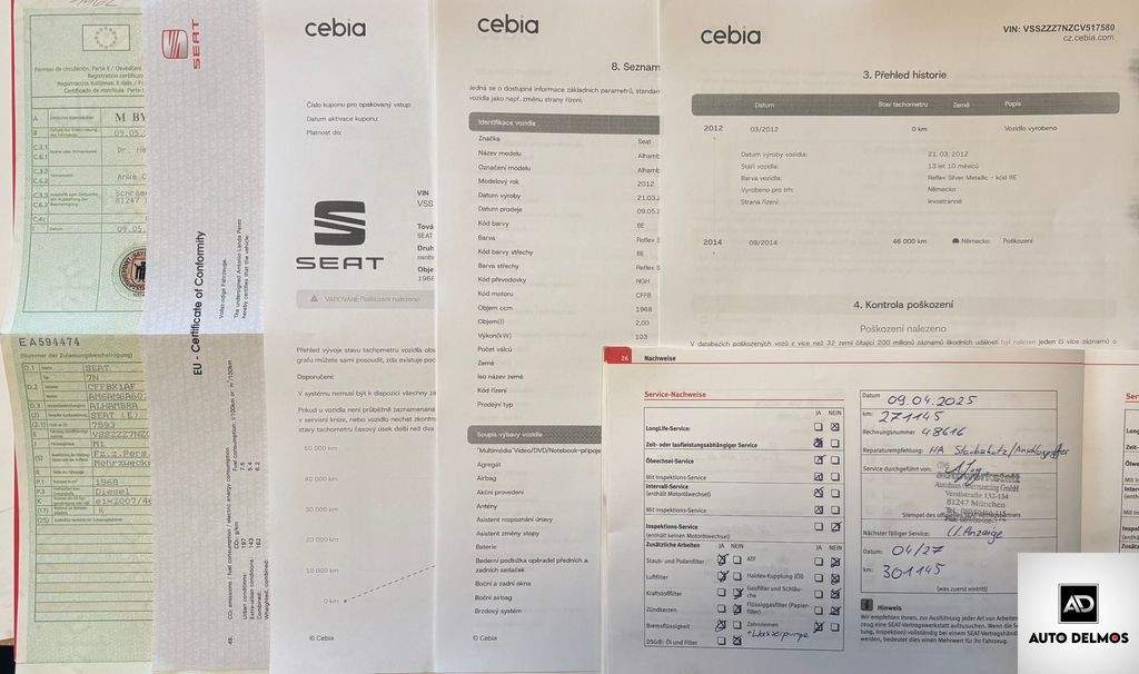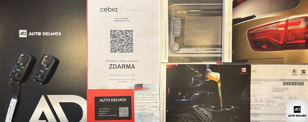 VIN-VSSZZZ7NZCV517580--Seat Alhambra 2.0TDI-103kW/2012/1.MAJITEL; 7MÍST-KAMERA-MANUAL-TAŽNÉ ZAŘÍZENÍ - VŮZ PO PRVNÍM MAJITELI V NAPROSTO PERFEKTNÍM STAVU. JEDNÁ SE O VELICE ZACHOVALÝ VŮZ; MODEL A PROVOZ 2012 . Pravidelný servis v síti autorizovaných servisů SEAT AUTO; Výhodného financování vozu vč. prodloužené záruky. Certifikát najetých kilo; roku výroby a původu vozu od nezávislé společnosti CEBIA; DEKRA; SEAT AUTO . PO KOMPLETNÍM SERVISU V 271.000KM; nabídka není nabídkou ve smyslu §1731 nebo §1732 občanského zákoníku; KAMERA; 7 MÍST; STYLE ECOMOTIVE; SENZOR ÚNAVY; TEMPOMAT; AUT. SVĚTLA A STĚRAČE; VÝHŘEV PŘ. SEDADEL;