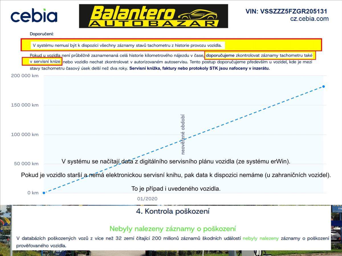 Spotřebitelský úvěr možný, NÍZKÉ SPLÁTKY, akontace od 0%, informujte se - 601 002 157. Prověřeno CEBIA. záruka PŮVODU a KILOMETRŮ.; Spotřebitelský úvěr možný; Perfektní stav; SERVISNÍ KNÍŽKA - pravidelný servis; protokoly z Německé STK; full led světla; mirror link; chrom paket; 2x klíč DO; jede parádně. VIN: VSSZZZ5FZGR205131. Záruka PŮVODU a KILOMETRŮ. Kontakt: 601 002 157; rádi Vám poradíme. Nejedná se o návrh na uzavření smlouvy (nabídku) ve smyslu § 1731 a §1732 zákona č. 89/2012 Sb.; Občanského zákoníku. Společnost Balantero s.r.o. si vyhrazuje právo uzavření všech smluvních vztahů písemně.;