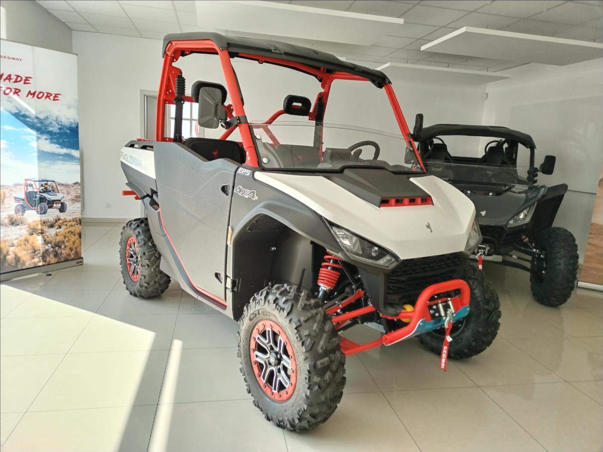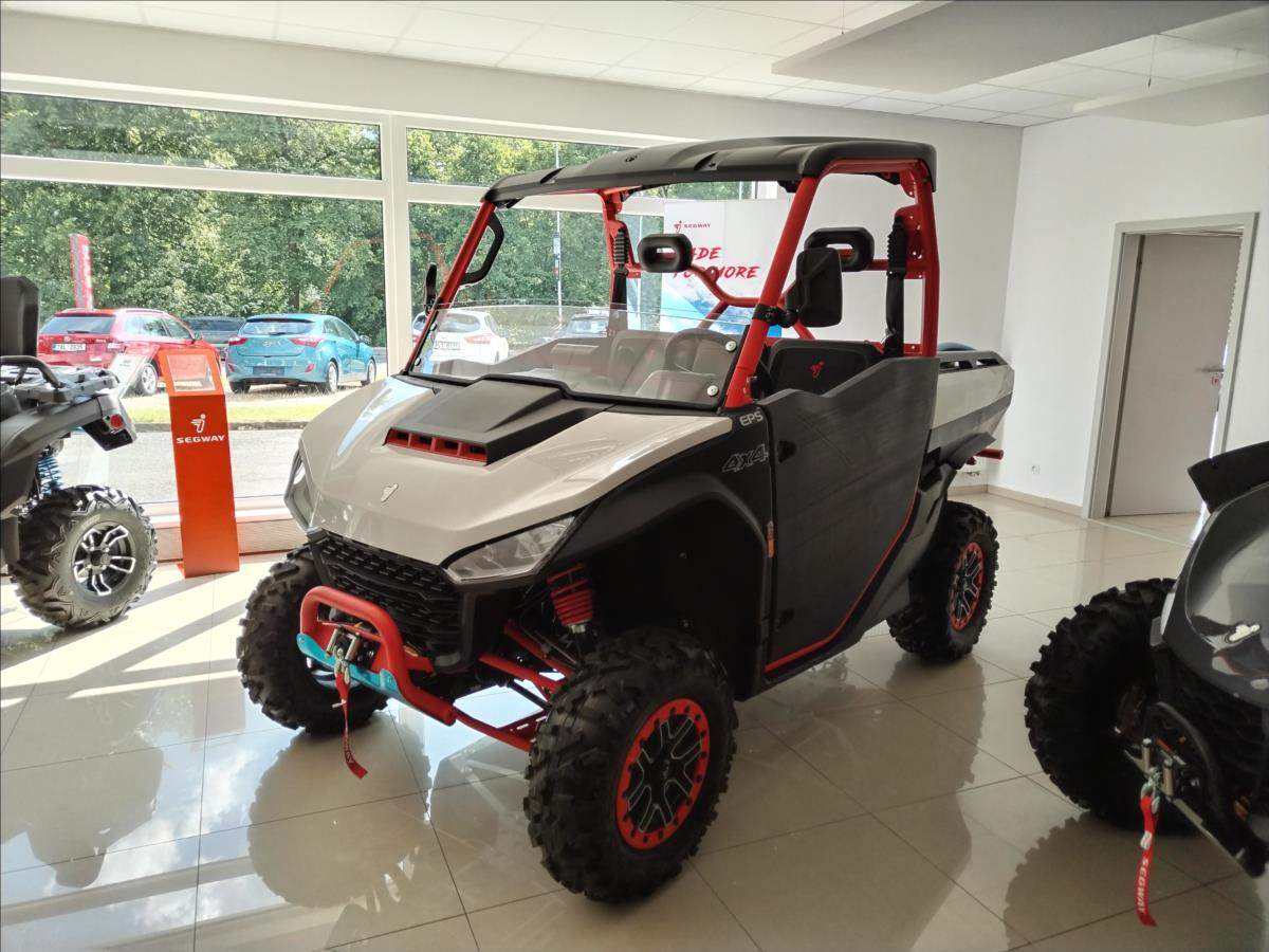 Sleva 10 000,- Kč při využití financování s vybranými partnery.; VYUŽIJTE NAŠE VÝHODNÉ FINANCOVÁNÍ. PRODLOUŽENÁ ZÁRUKA 5 LET. Elektrický naviják 4500 lbs; inteligentní elektrický posilovač řízení; TFT digitální přístrojová deska; Smart Commanding System (TBOX); tažné zařízení; nastavitelný volant; anatomicky tvarovaná sedadla s hlavovou opěrkou; tříbodové pásy; přední ochranný rám; zadní ochranný rám; pevné boční dveře; pevná střecha; velká sklopná korba; 14'' hliníkové disky; přední ochranné plexi. Barevná provedení: černo- zelená bílo- červená černo- šedá;