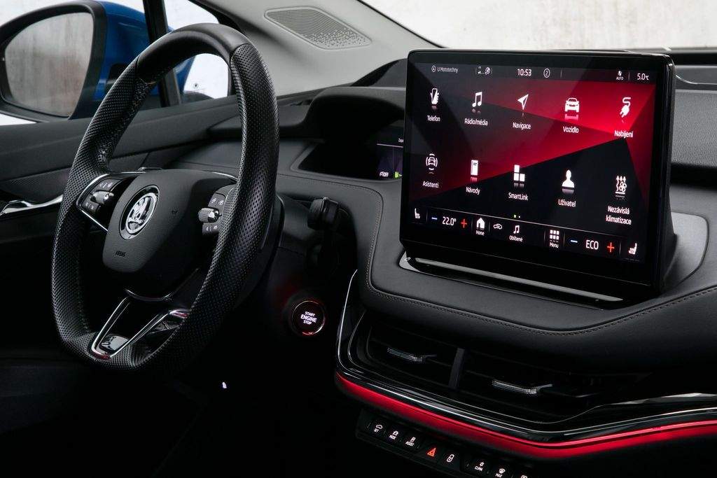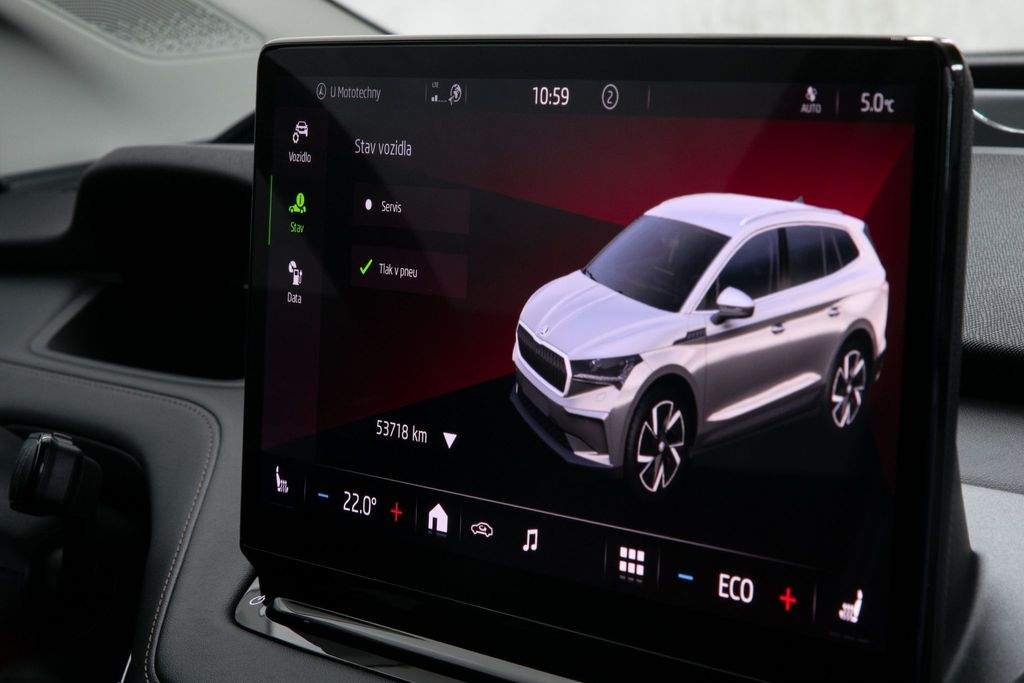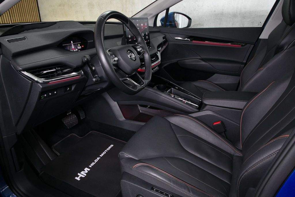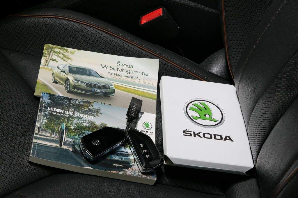 VIN TMBJC9NY5NF057507. Záruka na baterie 8 let nebo 160 000 km. Proveden test baterie; k vozidlu certifikát zdarma. Vozidlo od autorizovaného dealera Škoda; původem z Německa po 1. majiteli. Servis pouze v autorizovaném servisu Škoda doložitelný servisní knihou. Garance počtu najetých km a původu v kupní smlouvě. K vozu veškerá palubní dokumentace; servisní kniha; 2x klíč od vozidla. Interiér v provedení kůže; El. nastavitelná přední sedadla s pamětí a masáží; Tepelné čerpadlo; Nezávislá klimatizace; Matrix LED světlomety; Přední maska Crystal Face; Originální tažné zařízení; Panoramatické střešní okno; Driving Mode Selection s DCC - adaptivní podvozek; ACC - Adaptivní tempomat; Head-up Display; Bezklíčové odemykání a startování; Virtuální pedál; Třízónová automatická klimatizace; Vyhřívaná přední i zadní sedadla; Vyhřívaný volant; Vyhřívané čelní sklo; Automatické parkování; Zadní parkovací kamera; Navigace; Android auto; Apple CarPlay; Originální litá kola R19. MOŽNÝ ODPOČET DPH.;