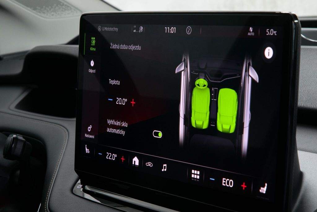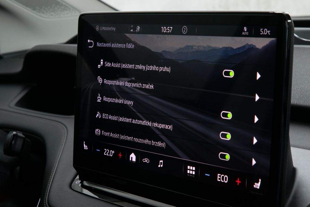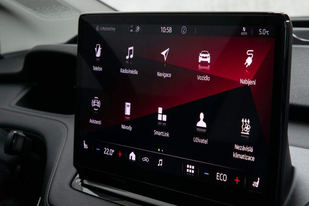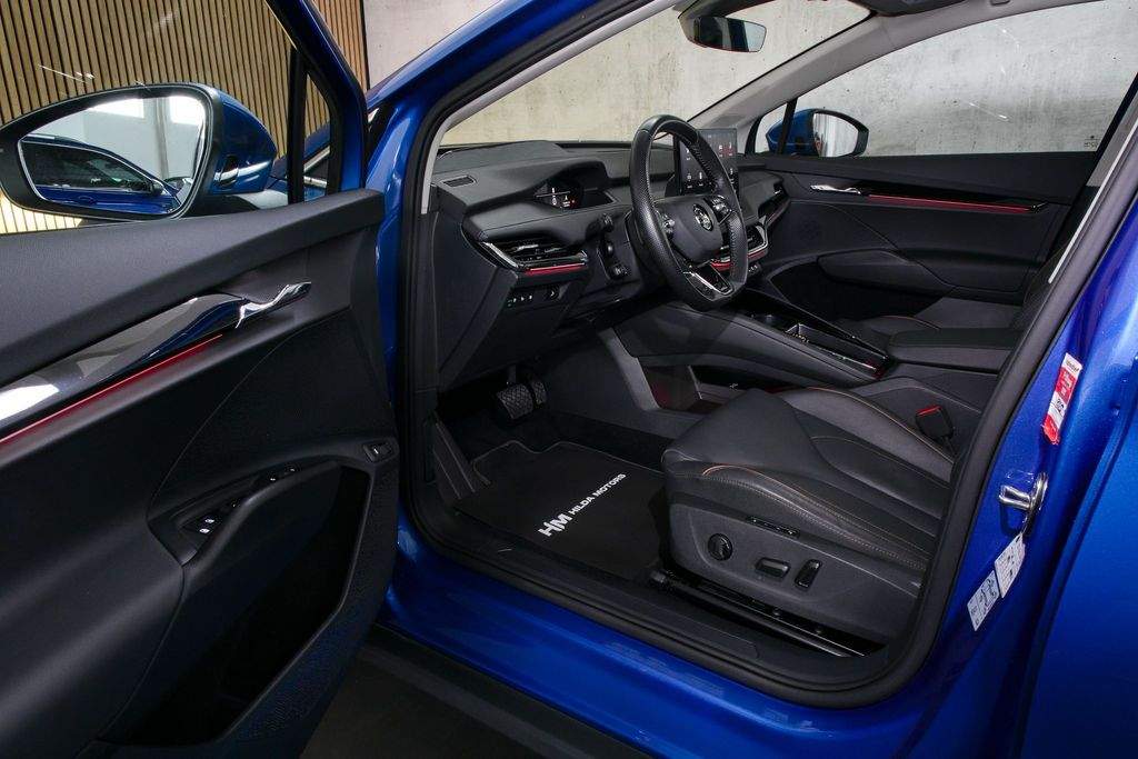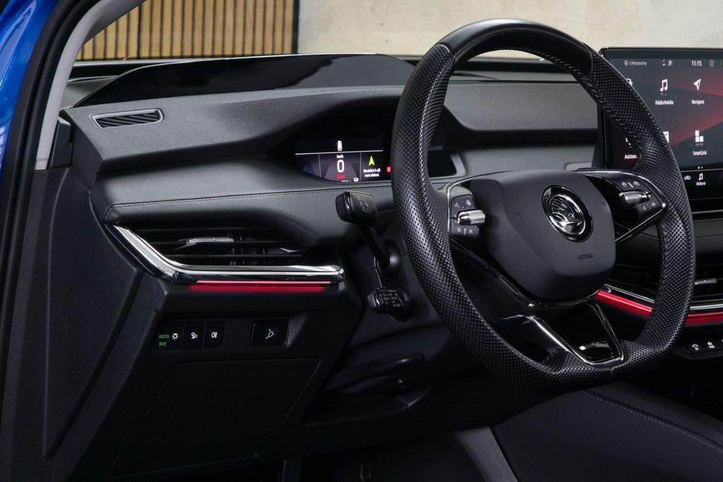 VIN TMBJC9NY5NF057507. Záruka na baterie 8 let nebo 160 000 km. Proveden test baterie; k vozidlu certifikát zdarma. Vozidlo od autorizovaného dealera Škoda; původem z Německa po 1. majiteli. Servis pouze v autorizovaném servisu Škoda doložitelný servisní knihou. Garance počtu najetých km a původu v kupní smlouvě. K vozu veškerá palubní dokumentace; servisní kniha; 2x klíč od vozidla. Interiér v provedení kůže; El. nastavitelná přední sedadla s pamětí a masáží; Tepelné čerpadlo; Nezávislá klimatizace; Matrix LED světlomety; Přední maska Crystal Face; Originální tažné zařízení; Panoramatické střešní okno; Driving Mode Selection s DCC - adaptivní podvozek; ACC - Adaptivní tempomat; Head-up Display; Bezklíčové odemykání a startování; Virtuální pedál; Třízónová automatická klimatizace; Vyhřívaná přední i zadní sedadla; Vyhřívaný volant; Vyhřívané čelní sklo; Automatické parkování; Zadní parkovací kamera; Navigace; Android auto; Apple CarPlay; Originální litá kola R19. MOŽNÝ ODPOČET DPH.;