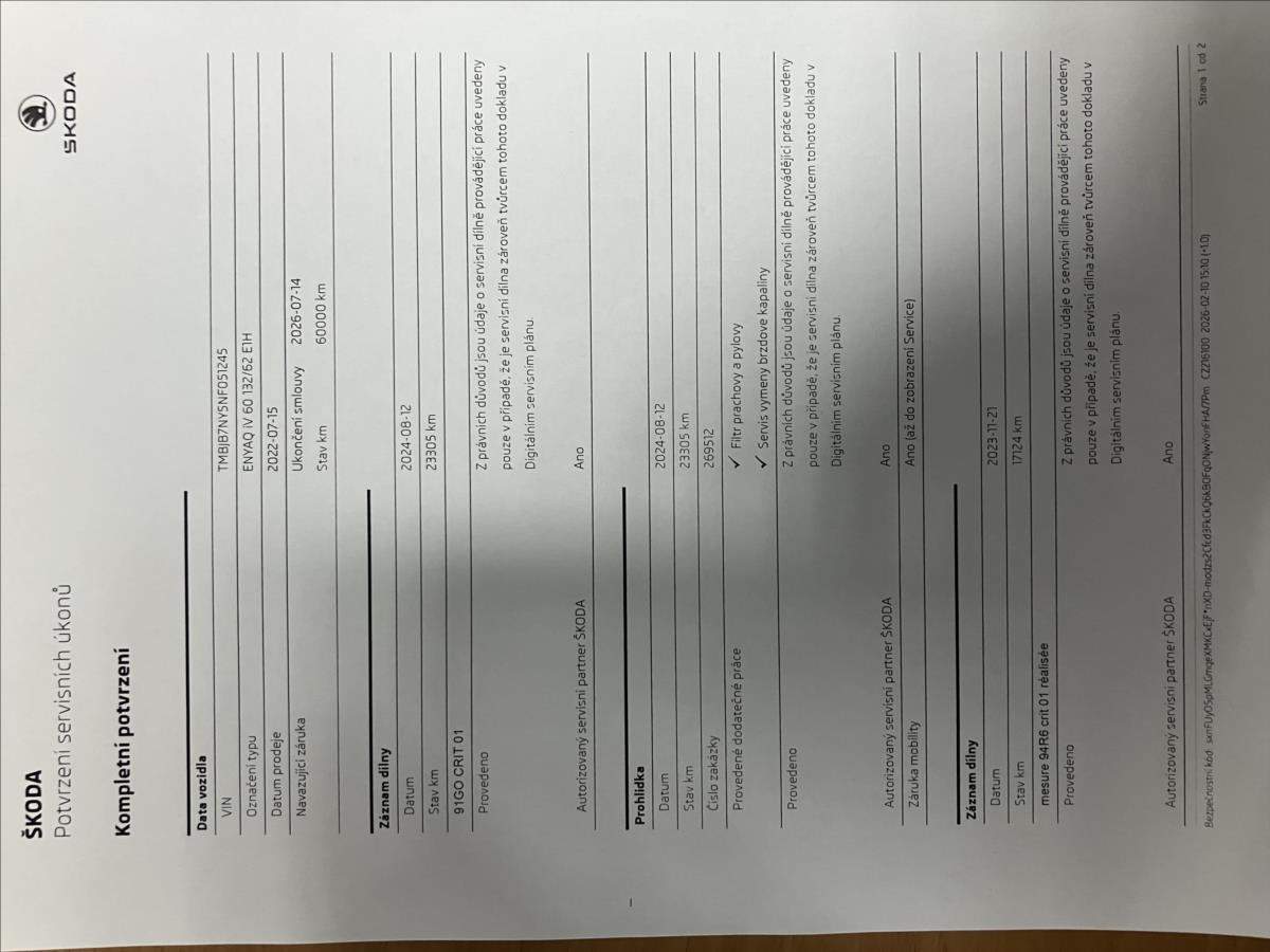 První majitel; Záruka 4 roky/60 000 km;