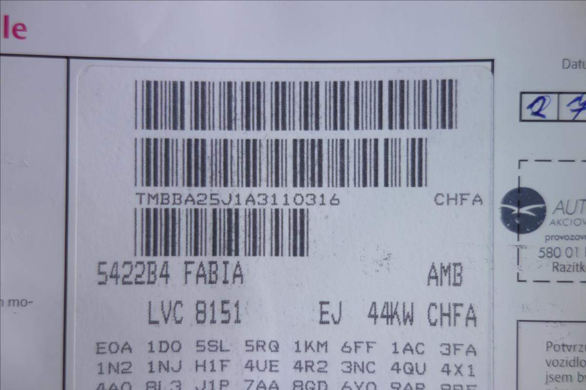 TMBBA25J1A3110316 prověřit vozidlo online