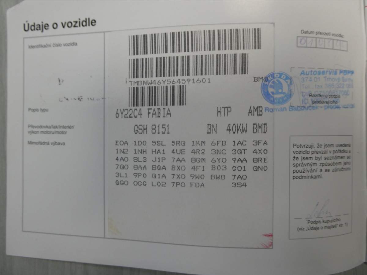 TMBNW46Y564591601 prověřit vozidlo online