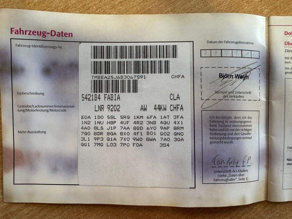 TMBEA25J6B3067591 prověřit vozidlo online