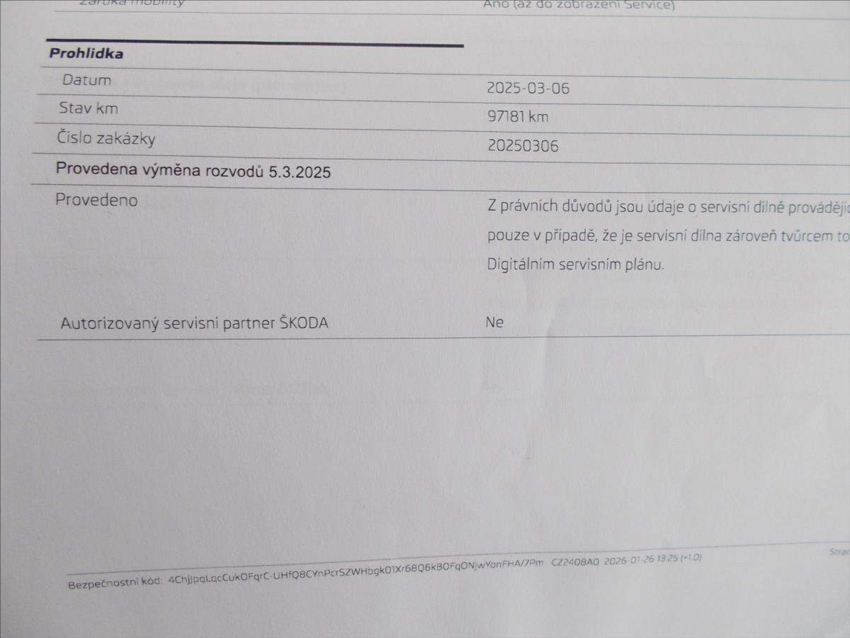 Čtvrtý majitel; 2 x klíče od vozidla; koupené nové v ČR; zimní pneu na vozidle; nová STK; servisované pouze v autorizovaném servisu - poslední servis 1/2026; výborná výbava i stav vozidla; vozidlo má od 26.1.2026 záruku mobility na jeden rok;
