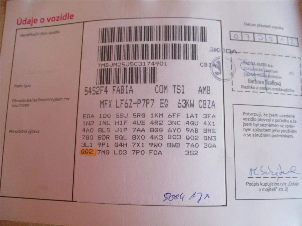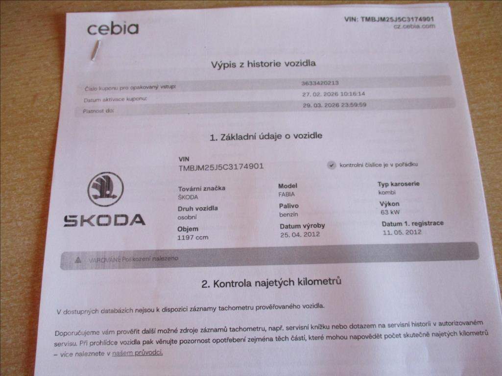 Škoda Škoda Fabia Škoda Fabia - Benzín Škoda Fabia - Kombi Škoda Fabia - 2012 Osobní vůz
