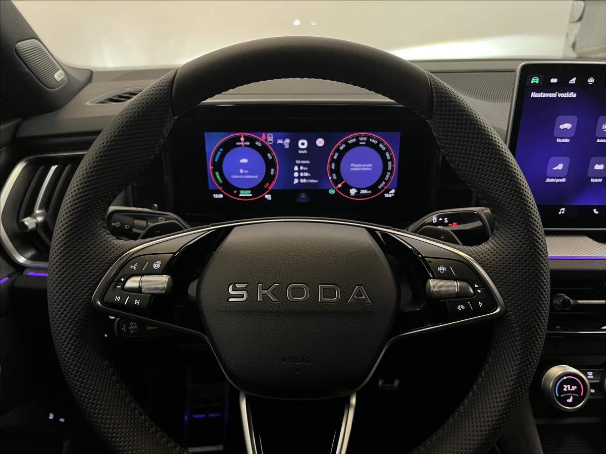 První majitel; Leasing možný; Spotřebitelský úvěr možný; TERMÍN ODBĚRU: vůz odběru od 04/26; DALŠÍ SLUŽBY: prodloužená záruka 5let / 100.000 km + předplacený servis 5 let / 100.000 km; EXTRA VÝBAVA: vyhřívané čelní sklo + nabíjecí kabel + tažné zařízení + head-up display + LED paket plus (Matrix-LED přední světlomety; prosvětlená maska chladiče; top LED spojená zadní světla s animovanými ukazateli směru) + komfort paket plus (kessy; alarm; el. ovládané víko zavazadlového protoru; virtuální pedál; el. nastavitelné přední sedadla; variabilní dvojitá podlaha; audiosystém CANTON; dojezdové rezervní kolo) + asistovaná jízda 2.5 (adaptivní tempomat; adaptivní vedení v jízdním pruhu; automatické parkování; panoramatický kamerový systém; prediktivní ochrana cestujících zepredu a zezadu); další informace získáte u našich prodejců;