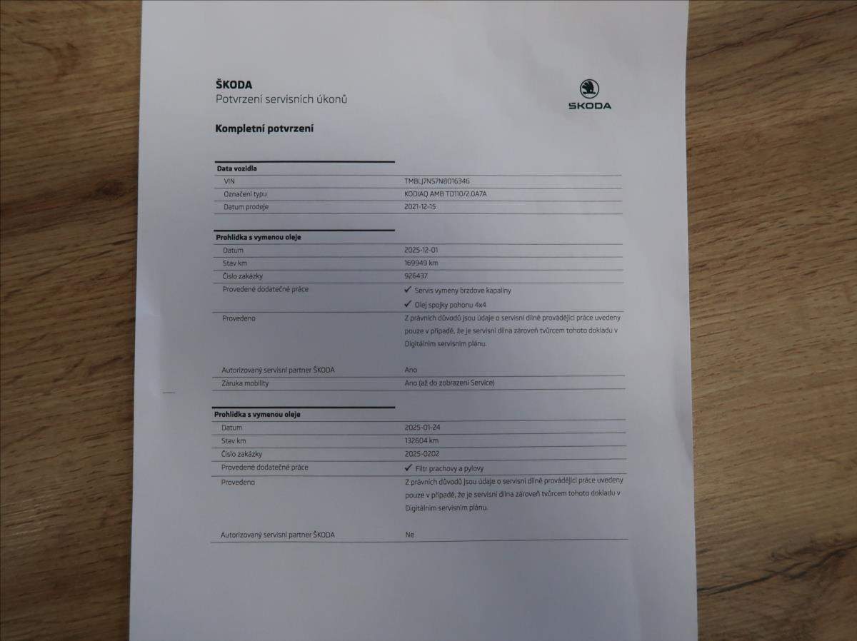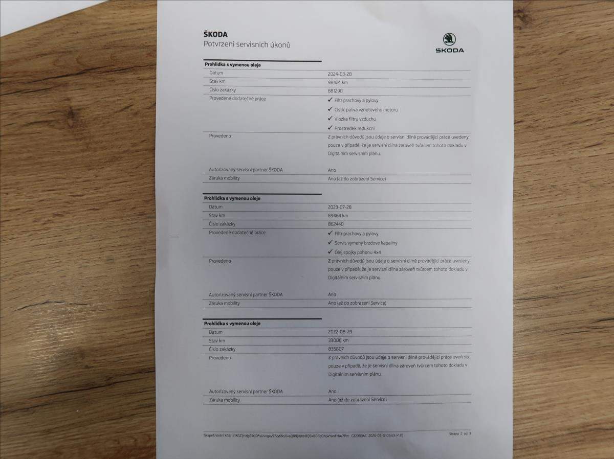 První majitel; Úvěr možný; Cena bez DPH: 470 247; -Kč. Vozidlo zakoupeno jako nové v České republice; po prvním majiteli; řádně vedená servisní kniha; pravidelný servis v autorizovaném servise Škoda; pohon 4x4; automatická převodovka; automatická dvouzónová klimatizace; LED světlomety; parkovací senzory přední + zadní + kamera; vyhřívaná sedadla; tažné zařízení; možný odpočet DPH; možný protiúčet; možný prodej na splátky.;