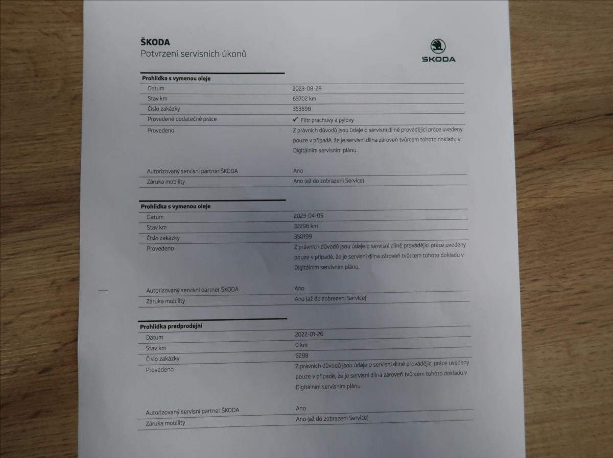 První majitel; Úvěr možný; Cena bez DPH: 297 438; -Kč. Vozidlo zakoupeno jako nové v České republice; po prvním majiteli; řádně vedená servisní kniha; pravidelný servis v autorizovaném servise Škoda; dvouzónová automatická klimatizace; tempomat; parkovací senzory přední + zadní; vyhřívaná sedadla; LED světlomety; druhá sada disků + zimní pneu; možný odpočet DPH; možný protiúčet; možný prodej na splátky.;