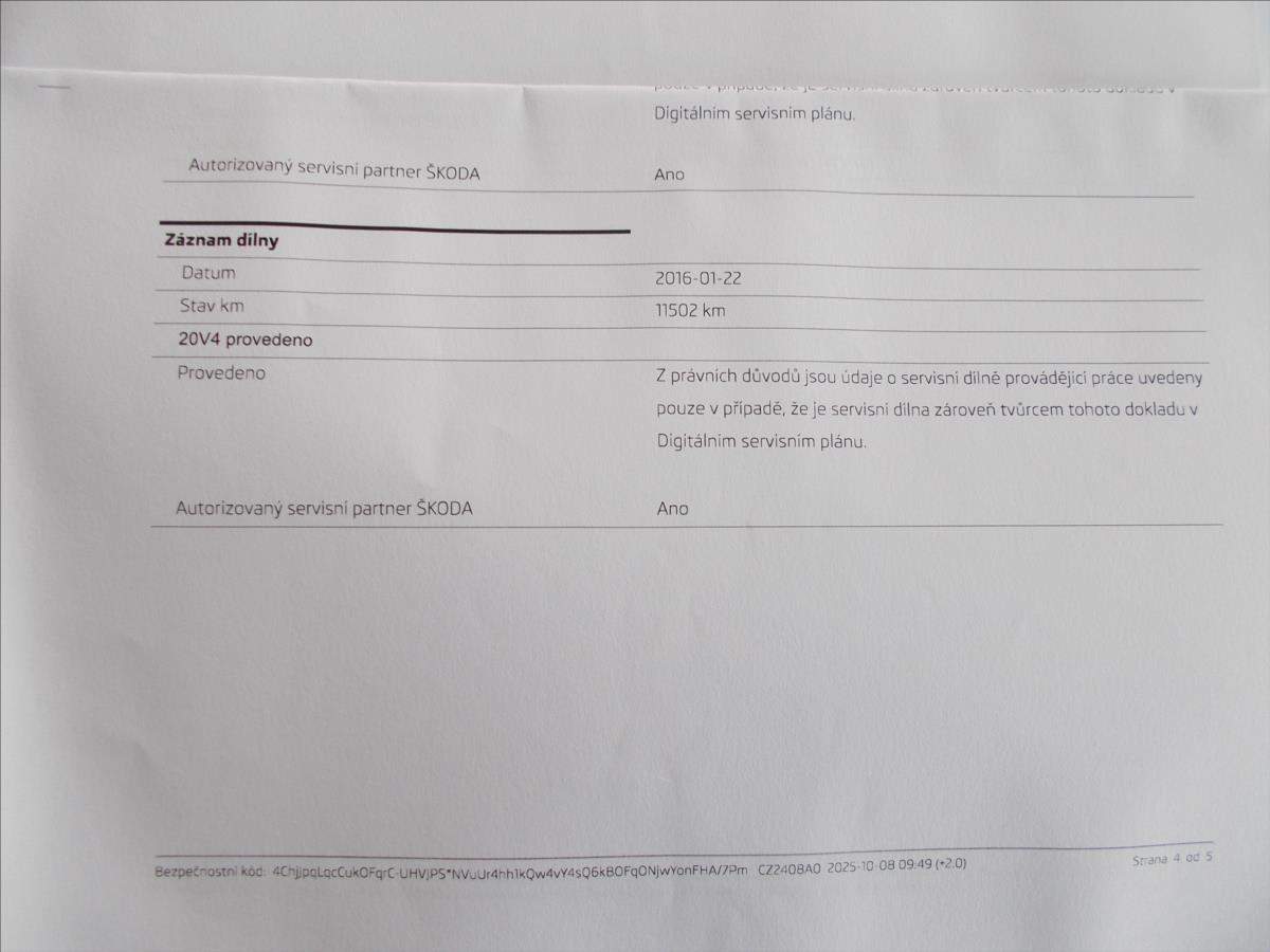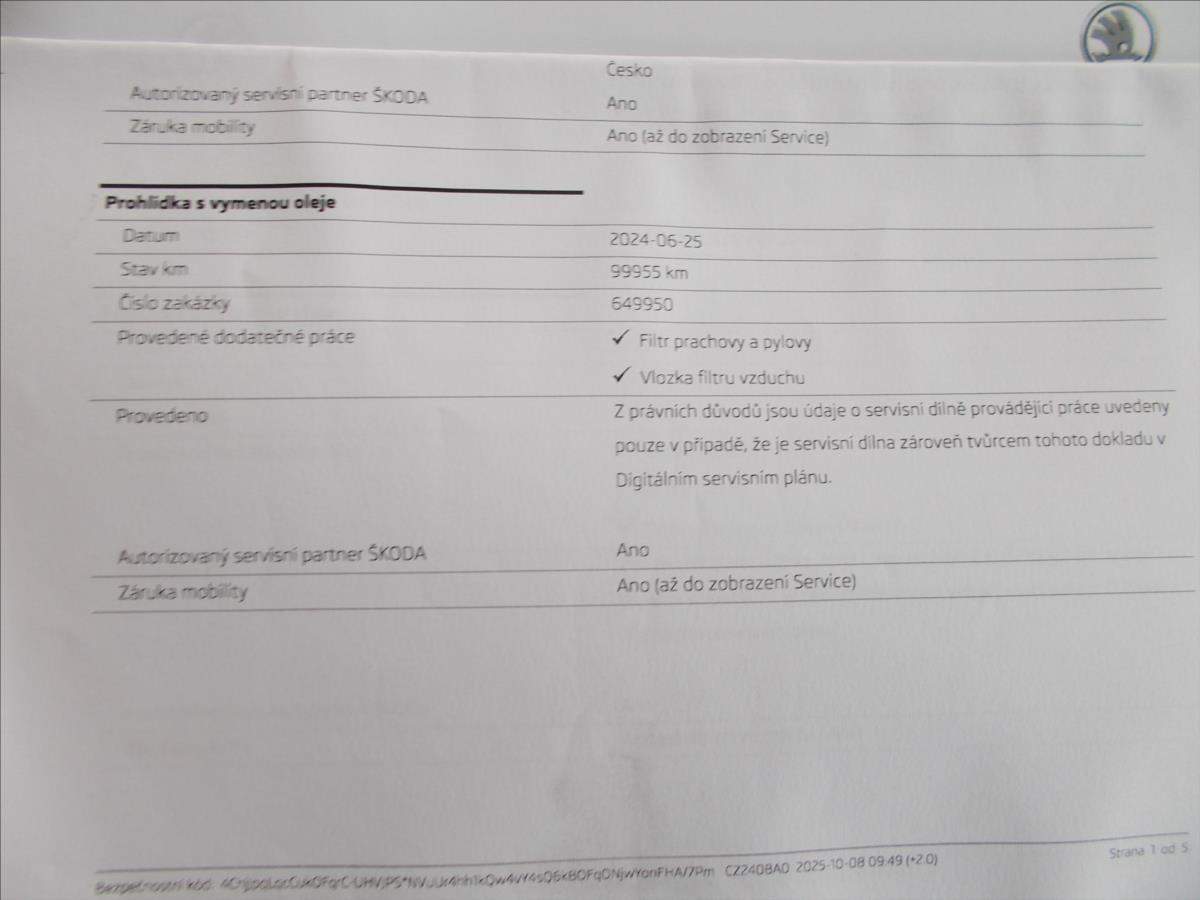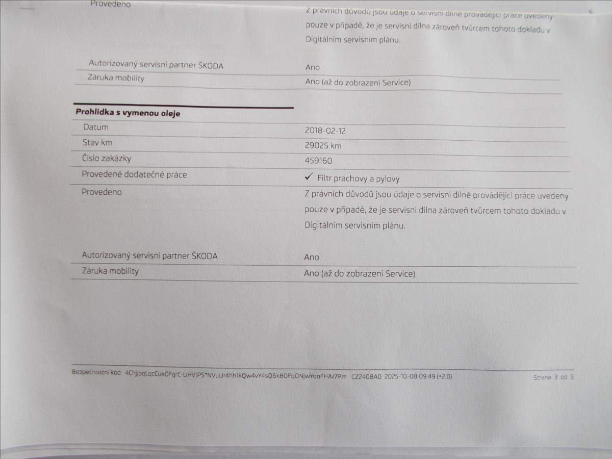 První majitel; 2 x klíče od vozidla + 2 x klíče od zamykání zpátečky; koupené nové v ČR - jediná majitelka - druhý zápis v TP pouze obchodník; zimní pneu na vozidle; jasná servisní historie - servisované pouze v autorizovaném servisu - poslední servis v autorizovaném servisu dne 8.10.2025 ve 122452 km;