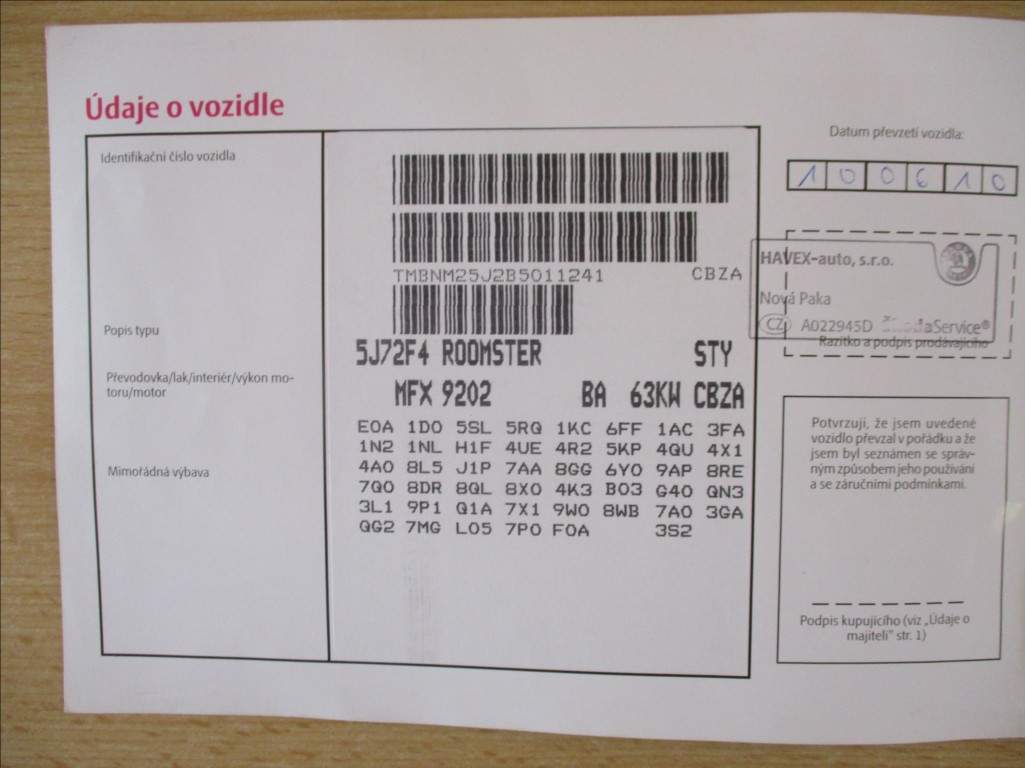 Škoda Škoda Roomster Škoda Roomster - Benzín Škoda Roomster - Kombi Škoda Roomster - 2010 Osobní vůz