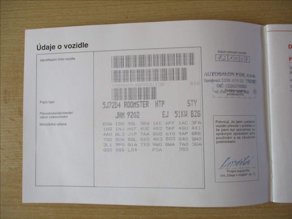 Škoda Škoda Roomster Škoda Roomster - Benzín Škoda Roomster - Kombi Škoda Roomster - 2007 Osobní vůz
