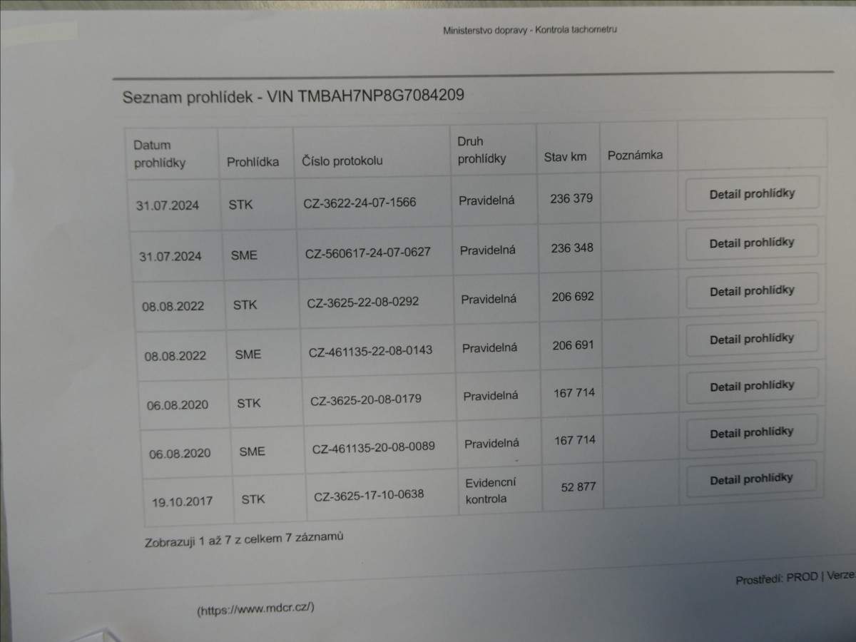 TMBAH7NP8G7084209 prověřit vozidlo online