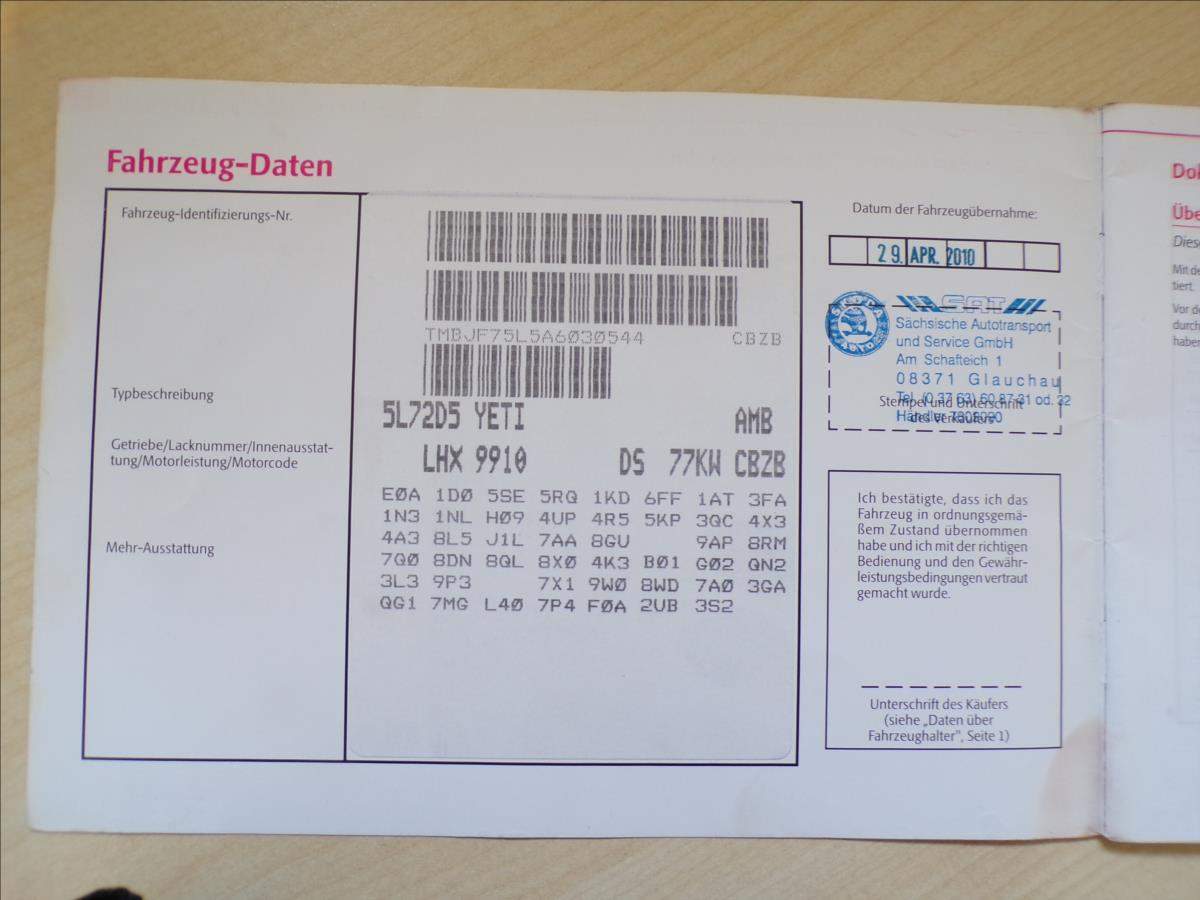 TMBJF75L5A6030544 prověřit vozidlo online