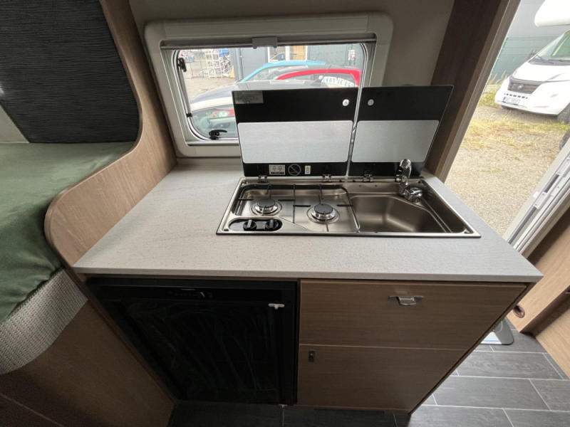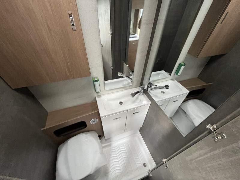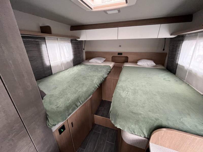 nádrž na čistou vodu 45 litrů; ponorné čerpadlo 12 V; podvozek AL-KO; náprava uložená na vlečných ramenech vč. tlumičů pérování; stabilizační vzpěry vpředu a vzadu; 14“ ocelové disky kol; tříhořákový vařič s nerezovým dřezem a skleněným krytem; záruka těsnosti nástavby 10 let;