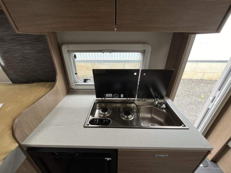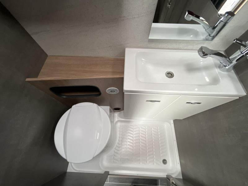 nádrž na čistou vodu 45 litrů; ponorné čerpadlo 12 V; podvozek AL-KO; náprava uložená na vlečných ramenech vč. tlumičů pérování; stabilizační vzpěry vpředu a vzadu; 14“ ocelové disky kol; tříhořákový vařič s nerezovým dřezem a skleněným krytem; záruka těsnosti nástavby 10 let;