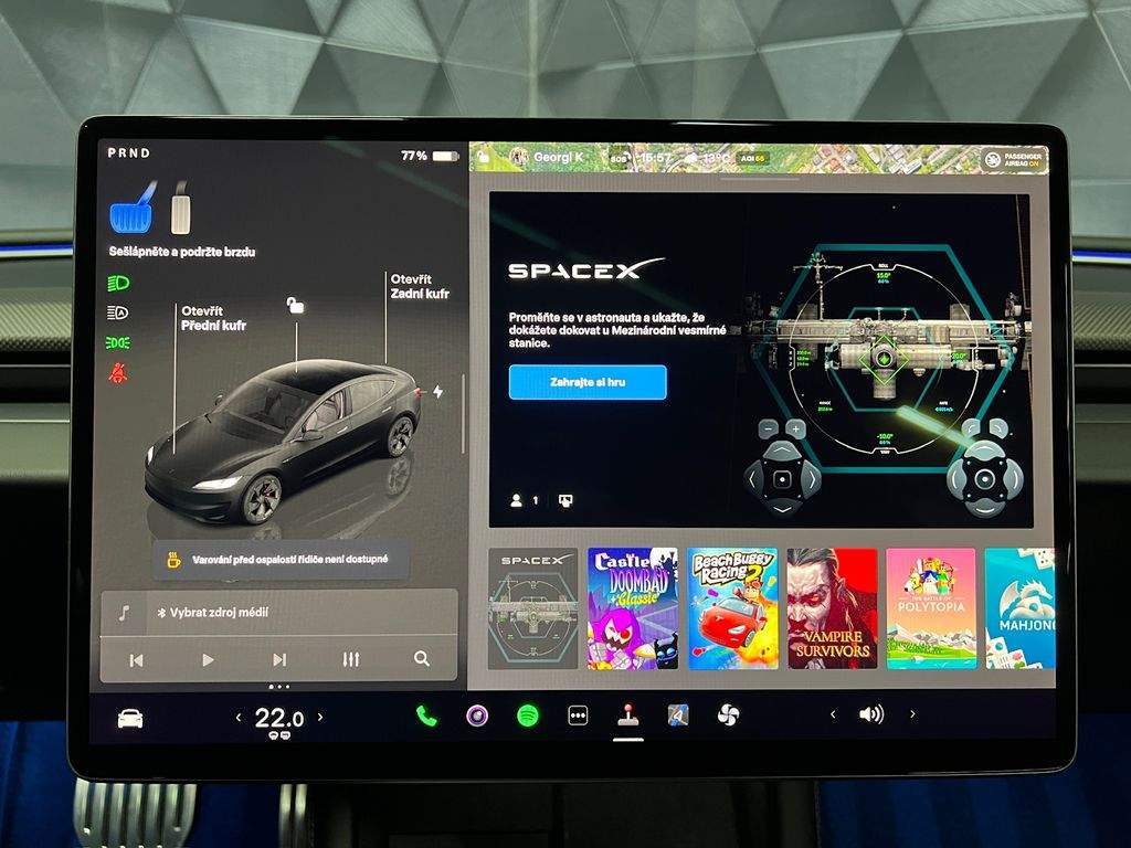 !!!KOUPENO NOVÉ V CZ!!!VOZIDLO V PLNÉ TOVÁRNÍ ZÁRUCE!!!MOŽNOST ODPOČTU DPH!!! ADAPTIVNÍ FULL LED MATRIX SVĚTLOMETY S LED DENNÍM SVÍCENÍM; SATELITNÍ NAVIGANČÍ SYSTÉM; CENTRÁLNÍ DISPLEJ 15; 4'; 3-ZÓNOVÁ AUTOMATICKÁ KLIMATIZACE; ADAPTIVNÍ TEMPOMAT; AUTOPILOT; PŘEDNÍ SEDADLA EL. NASTAVITELNÁ; VYHŘÍVANÁ A VENTILOVANÁ; ZADNÍ SEDADLA VYHŘÍVANÁ; PANORAMATICKÉ SKLO; VYHŘÍVANÝ MULTIFUNIČNÍ EL. NASTAVITELNÝ VOLANT; APPLE/ANDROID; ASISTENT PRO HLÍDÁNÍ JÍZDNÍCH PRUHŮ A MRTVÝCH ÚHLŮ; ASISTENT ZJIŠTĚNÍ ÚNAVY ŘIDIČE; ZADNÍ DOTYKOVÝ DISPLEJ 8'; BEZDRÁTOVÉ NABÍJENÍ PRO MOBILNÍ TELEFONY; DVOJITÁ AKUSTICKÁ SKLA; AMBIENTNÍ OSVĚTLENÍ; DETEKCE OSAMOCENÉHO DÍTĚTE; CARBONOVÉ DOPLŇKY; STAV BATERIE - SOH - 100%; 360°PARKOVACÍ KAMERA; ISOFIX; ZATMAVENÉ ZADNÍ SKLA; EL. OVLÁDÁNÍ OTEVÍRÁNÍ A ZAVÍRÁNÍ VÍKA ZAVAZADLOVÉHO PROSTORU; ALU. 20' KOLA;