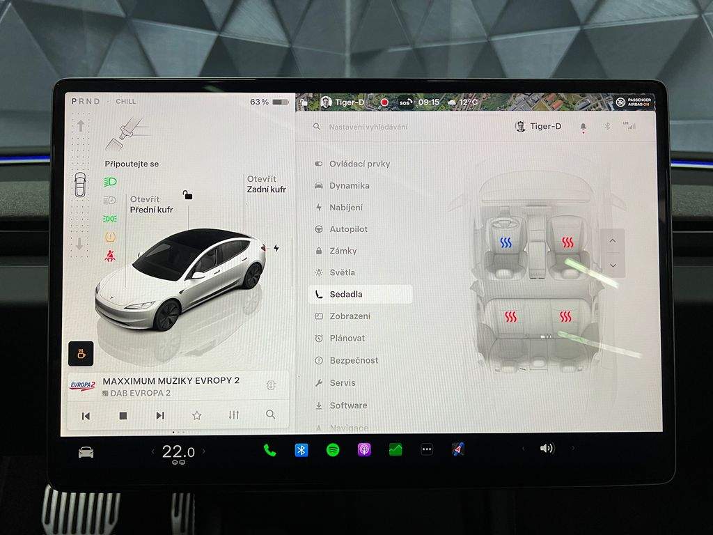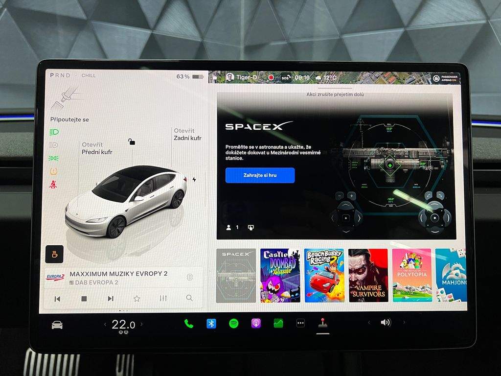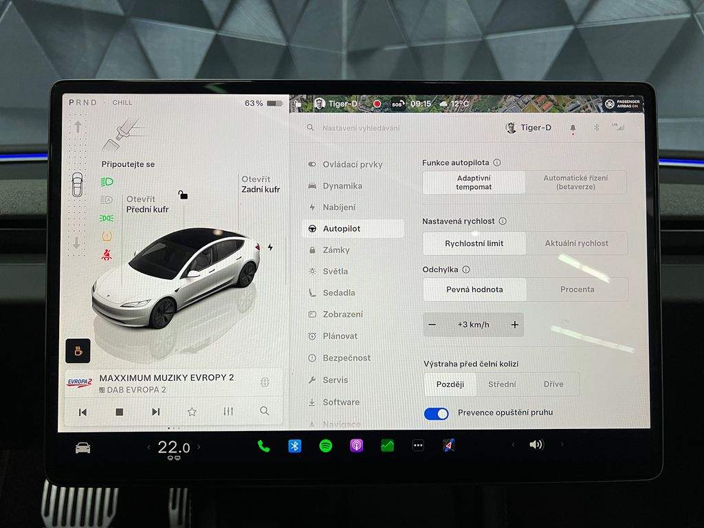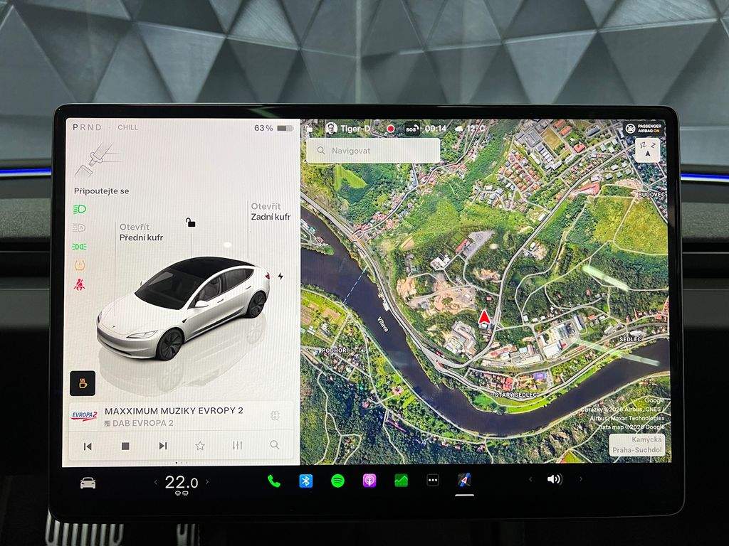!!!KOUPENO NOVÉ V CZ!!!VOZIDLO V PLNÉ TOVÁRNÍ ZÁRUCE!!!MOŽNOST ODPOČTU DPH!!! ADAPTIVNÍ FULL LED MATRIX SVĚTLOMETY S LED DENNÍM SVÍCENÍM; SATELITNÍ NAVIGANČÍ SYSTÉM; CENTRÁLNÍ DISPLEJ 15; 4'; 3-ZÓNOVÁ AUTOMATICKÁ KLIMATIZACE; ADAPTIVNÍ TEMPOMAT; AUTOPILOT; PŘEDNÍ SEDADLA EL. NASTAVITELNÁ; VYHŘÍVANÁ; VENTILOVANÁ; ZADNÍ SEDADLA VYHŘÍVANÁ; PANORAMATICKÉ SKLO; VYHŘÍVANÝ MULTIFUNKČNÍ EL. NASTAVITELNÝ VOLANT; APPLE/ANDROID; ASISTENT PRO HLÍDÁNÍ JÍZDNÍCH PRUHŮ A MRTVÝCH ÚHLŮ; ASISTENT ZJIŠTĚNÍ ÚNAVY ŘIDIČE; ZADNÍ DOTYKOVÝ DISPLEJ 8'; BEZDRÁTOVÉ NABÍJENÍ PRO MOBILNÍ TELEFONY; DVOJITÁ AKUSTICKÁ SKLA; AMBIENTNÍ OSVĚTLENÍ; DETEKCE OSAMOCENÉHO DÍTĚTE; STAV BATERIE - SOH - 97%; ZADNÍ PARKOVACÍ KAMERA; ISOFIX; ZATMAVENÉ ZADNÍ SKLA; ALU. 18' KOLA;