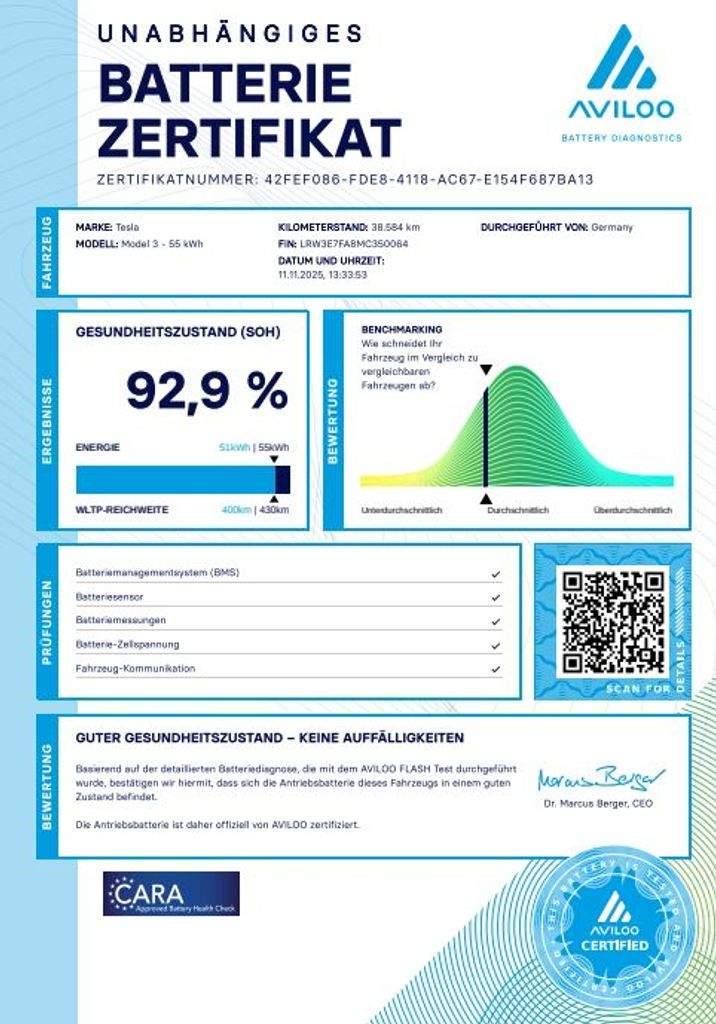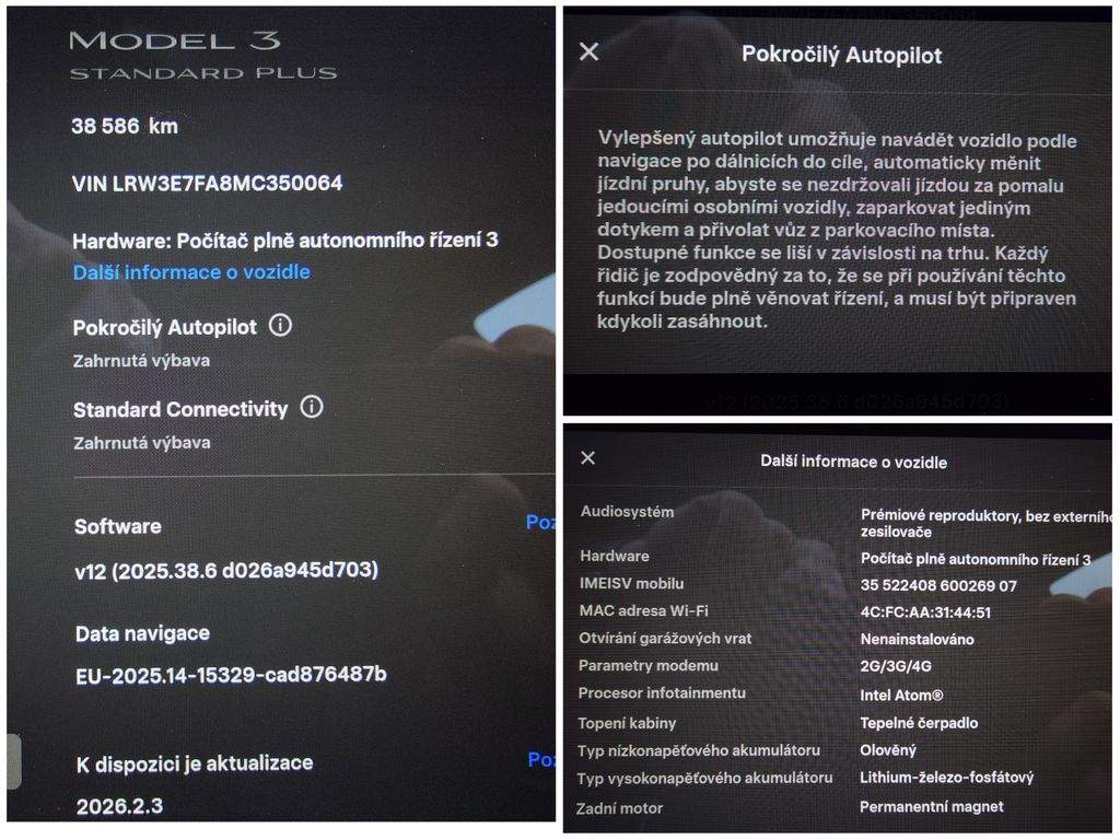 Tesla Model 3 Standard Range Plus 239 kW SOH 92; 9 % (ODPOČET DPH) - cena uvedena vč. DPH; baterie 55 kWh -LRW3E7FA8MC350064; dovoz: Německo; elektro; do provozu: 2.11.2021; najeto: 38586 km; pohon kol: zadní; automatická převodovka; STK do: 2/2028; přední a zadní parkovací senzory; parkovací kamera; přední a zadní vyhřívaná sedadla; vyhřívaný volant; EAP AUTOPILOT; BOOM BOX; MATRIX SVĚTLOMETY; procesor INTEL ATOM; WLTP 491 km. Záruka na Akumulátor a hnací ústrojí 8 let nebo po ujetí 160.000 km (podle toho; co nastane dříve). *MOŽNOST VYKOUPENÍ VAŠEHO STARÉHO VOZU PROTIÚČTEM* *MOŽNOST VÝHODNÉHO FINANCOVÁNÍ už bez nulové akontace* Pro nezávaznou kalkulaci nás neváhejte kontaktovat. Nutno vždy volat předem! Prohlídky možné i mimo pracovní dobu tel. 732710796 Mates auto. Nejedná se o návrh na uzavření smlouvy (nabídku) dle § 1731 zákona č. 89/2012 Sb.; občanský zákoník; ale o nezávaznou nabídku.;