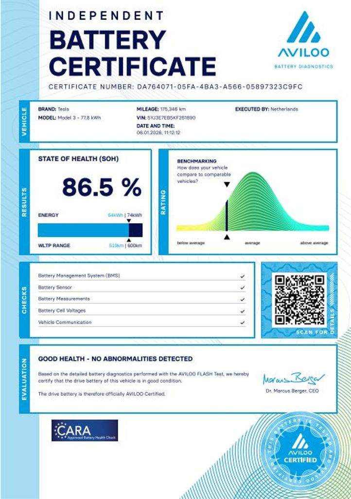 Tesla Model 3 Long Range Dual Motor - FSD 366 kW SOH 86; 5% (ODPOČET DPH) - cena uvedena vč. DPH; baterie 77; 8 kWh; dovoz: EU; VIN: 5YJ3E7EB5KF261890; elektro; do provozu: 28.3.2019; najeto: 175370 km; pohon kol: 4x4; automatická převodovka; STK do: 2/2028; WLTP 560 km; procesor INTEL ATOM; klimatizace; parkovací kamera; přední a zadní vyhřívaná sedadla; FSD - AUTOPILOT. Záruka na Akumulátor a hnací ústrojí 8 let nebo po ujetí 192.000 km (podle toho; co nastane dříve).*MOŽNOST VYKOUPENÍ VAŠEHO STARÉHO VOZU PROTIÚČTEM* *MOŽNOST VÝHODNÉHO FINANCOVÁNÍ už bez nulové akontace* Pro nezávaznou kalkulaci nás neváhejte kontaktovat. Nutno vždy volat předem! Prohlídky možné i mimo pracovní dobu tel. 732710796 Mates auto. Nejedná se o návrh na uzavření smlouvy (nabídku) dle § 1731 zákona č. 89/2012 Sb.; občanský zákoník; ale o nezávaznou nabídku.;
