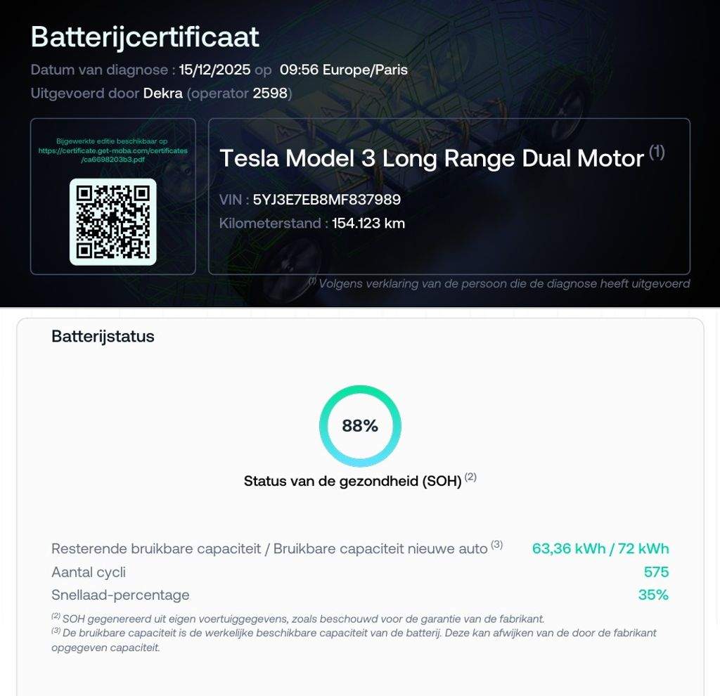 Tesla Model 3 Long Range Dual Motor - 366 kW SOH 88% (ODPOČET DPH) - cena uvedena vč. DPH; baterie 72 kWh; dovoz: EU; VIN: 5YJ3E7EB8MF837989; elektro; do provozu: 17.12.2020; najeto: 154130 km; pohon kol: 4x4; automatická převodovka; STK do: 2/2028; WLTP 580 km; procesor INTEL ATOM; klimatizace; parkovací kamera; přední a zadní vyhřívaná sedadla. Záruka na Akumulátor a hnací ústrojí 8 let nebo po ujetí 192.000 km (podle toho; co nastane dříve).*MOŽNOST VYKOUPENÍ VAŠEHO STARÉHO VOZU PROTIÚČTEM* *MOŽNOST VÝHODNÉHO FINANCOVÁNÍ už bez nulové akontace* Pro nezávaznou kalkulaci nás neváhejte kontaktovat. Nutno vždy volat předem! Prohlídky možné i mimo pracovní dobu tel. 732710796 Mates auto. Nejedná se o návrh na uzavření smlouvy (nabídku) dle § 1731 zákona č. 89/2012 Sb.; občanský zákoník; ale o nezávaznou nabídku.;