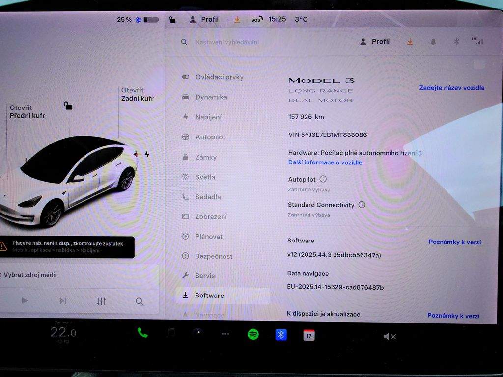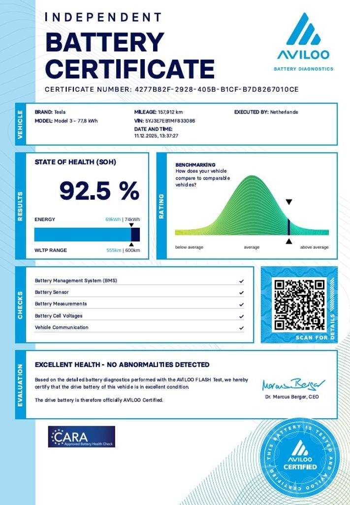 Tesla Model 3 Long Range Dual Motor - 366 kW SOH 92; 5% (ODPOČET DPH) - cena uvedena vč. DPH; baterie 77; 8 kWh; dovoz: EU; VIN: 5YJ3E7EB1MF833086; elektro; do provozu: 10.12.2020; najeto: 157926 km; pohon kol: 4x4; automatická převodovka; STK do: 2/2028; WLTP 580 km; procesor INTEL ATOM; klimatizace; parkovací kamera; přední a zadní vyhřívaná sedadla. Záruka na Akumulátor a hnací ústrojí 8 let nebo po ujetí 192.000 km (podle toho; co nastane dříve).*MOŽNOST VYKOUPENÍ VAŠEHO STARÉHO VOZU PROTIÚČTEM* *MOŽNOST VÝHODNÉHO FINANCOVÁNÍ už bez nulové akontace* Pro nezávaznou kalkulaci nás neváhejte kontaktovat. Nutno vždy volat předem! Prohlídky možné i mimo pracovní dobu tel. 732710796 Mates auto. Nejedná se o návrh na uzavření smlouvy (nabídku) dle § 1731 zákona č. 89/2012 Sb.; občanský zákoník; ale o nezávaznou nabídku.;