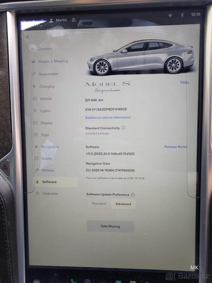 TEL: 776820599 OKR: DĚČÍN Prodám Tesla Model S P85 Signature edition – limitovaná verze s plnou výbavou; dovezená z Norska. Vůz je bez vážných poruch; pravidelně udržovaný a právě po technické kontrole platné do 06/2027. Reálný dojezd cca 350 km; baterie v dobré kondici. Najeto 220 000 km. Výkon 310 kW (416 PS); pohon zadních kol Vzduchový podvozek – komfortní i sportovní nastavení Panoramatické střešní okno (otevírací) Prémiový sound systém Vyhřívané kožené sedačky (Signature interiér s červeným prošíváním) Navigace; DAB radio; Bluetooth; tempomat; keyless go Parkovací senzory + zadní kamera Xenonová světla; dešťový i světelný senzor CCS upgrade + CCS adaptér (možnost nabíjet na nových rychlonabíječkách) Domácí nabíječka v ceně Sada letních i zimních pneumatik na ALU discích MCU1 – možnost upgradu na MCU2 (rychlejší systém; lepší konektivita; cca 37 000 Kč) Stav vozu Auto je v dobrém technickém stavu; plně pojízdné Spolehlivost ověřena cestou z Norska do ČR bez jakýchkoliv problémů. Přihlášeno v ČR. Po delším stání lehce klesá vzduchový podvozek Karoserie stříbrná metalíza; interiér černá kůže Signature; bez koroze; velmi zachovalý.;