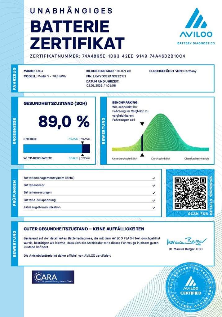 Tesla Model Y Long Range Dual Motor 378 kW SOH 89%; baterie 78.8kWh - LRWYGCEK4NC222151; dovoz: Německo; elektro; do provozu: 16.2.2022; najeto: 136216 km; pohon kol: 4x4; automatická převodovka; STK do: 1/2027; vyhřívaná přední i zadní sedadla; vyhřívaný volant; parkovací kamera; procesor AMD RYZEN; tepelné čerpadlo; MATRIX SVĚTLOMETY; BOOM BOX; WLTP 560 km. Záruka na Akumulátor a hnací ústrojí 8 let nebo po ujetí 192.000 km (podle toho; co nastane dříve). *MOŽNOST VYKOUPENÍ VAŠEHO STARÉHO VOZU PROTIÚČTEM* *MOŽNOST VÝHODNÉHO FINANCOVÁNÍ už bez nulové akontace* Pro nezávaznou kalkulaci nás neváhejte kontaktovat. Nutno vždy volat předem! Prohlídky možné i mimo pracovní dobu tel. 732710796 Mates auto. Nejedná se o návrh na uzavření smlouvy (nabídku) dle § 1731 zákona č. 89/2012 Sb.; občanský zákoník; ale o nezávaznou nabídku.;