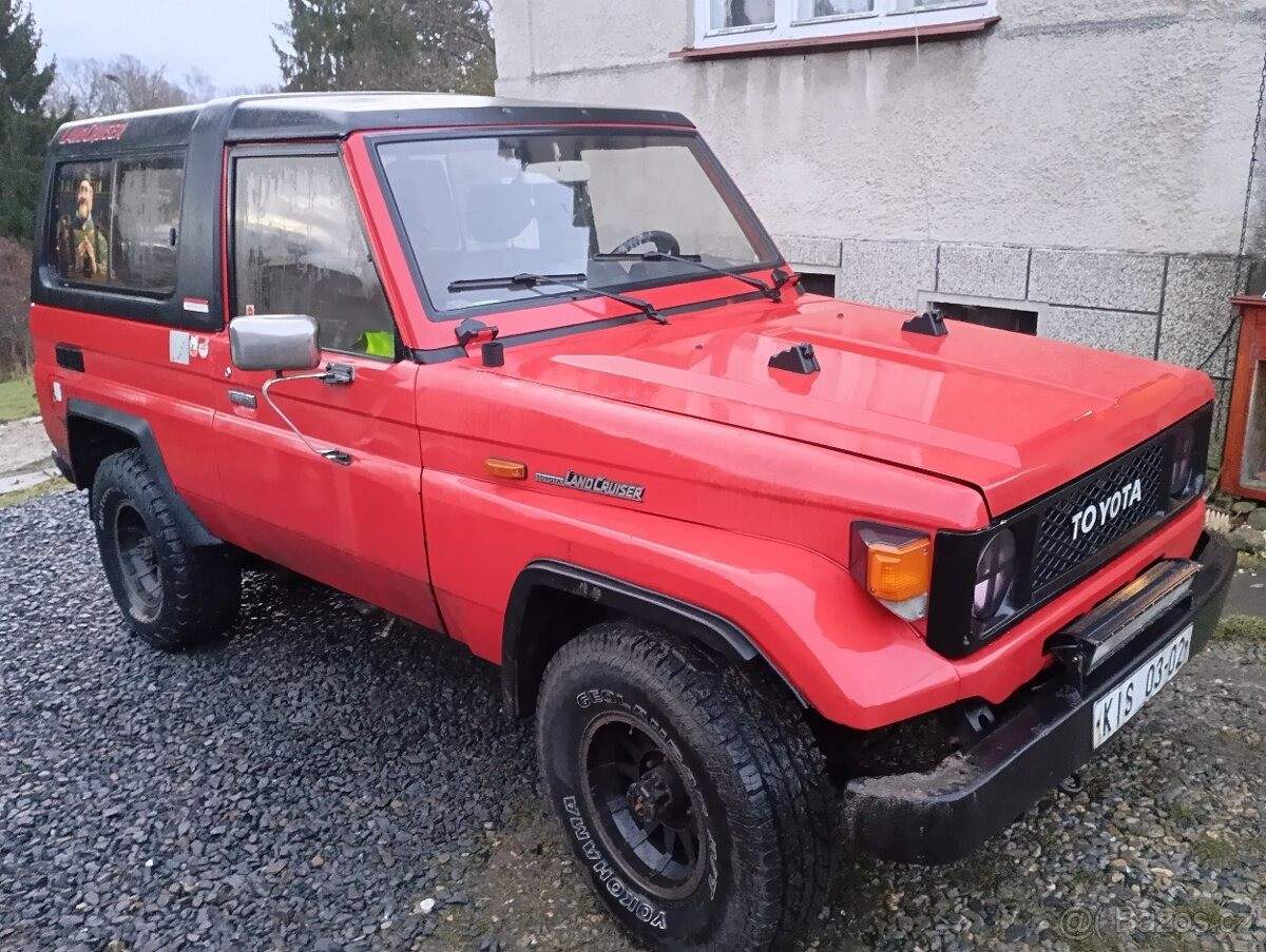 TEL: 774146555 OKR: KARVINA Prodám přes 40 let starou poctivou kovadlinu bez zbytečné elektroniky Land Cruiser BJ 73 VM. Motor VM 2; 5 TD 5ti válec(před 130 000km provedena generálka); auto jezdí svítí brzdí; netroubí; 2x nová AKU; nové přední pneu; před 4mi lety vyvařená + nový lak; koroze už bohužel opět úřaduje. Auto je denně v provozu. CB vysílačka; nezávislé topení; LED rampa. Jako bonus krásná retro SPZ. Únik oleje ze servo pumpy; korozí jsou napadené řidičovy a zadní dveře; rámky zadních oken; viz foto. STK do 19. 3. 2026. Spolehlivý vůz; který mě nikdy nikde nenechal. Prodávám(nerad)z důvodu potřeby civilnějšího auta. CENA K JEDNÁNÍ!volejte; pište; třeba se domluvíme.;
