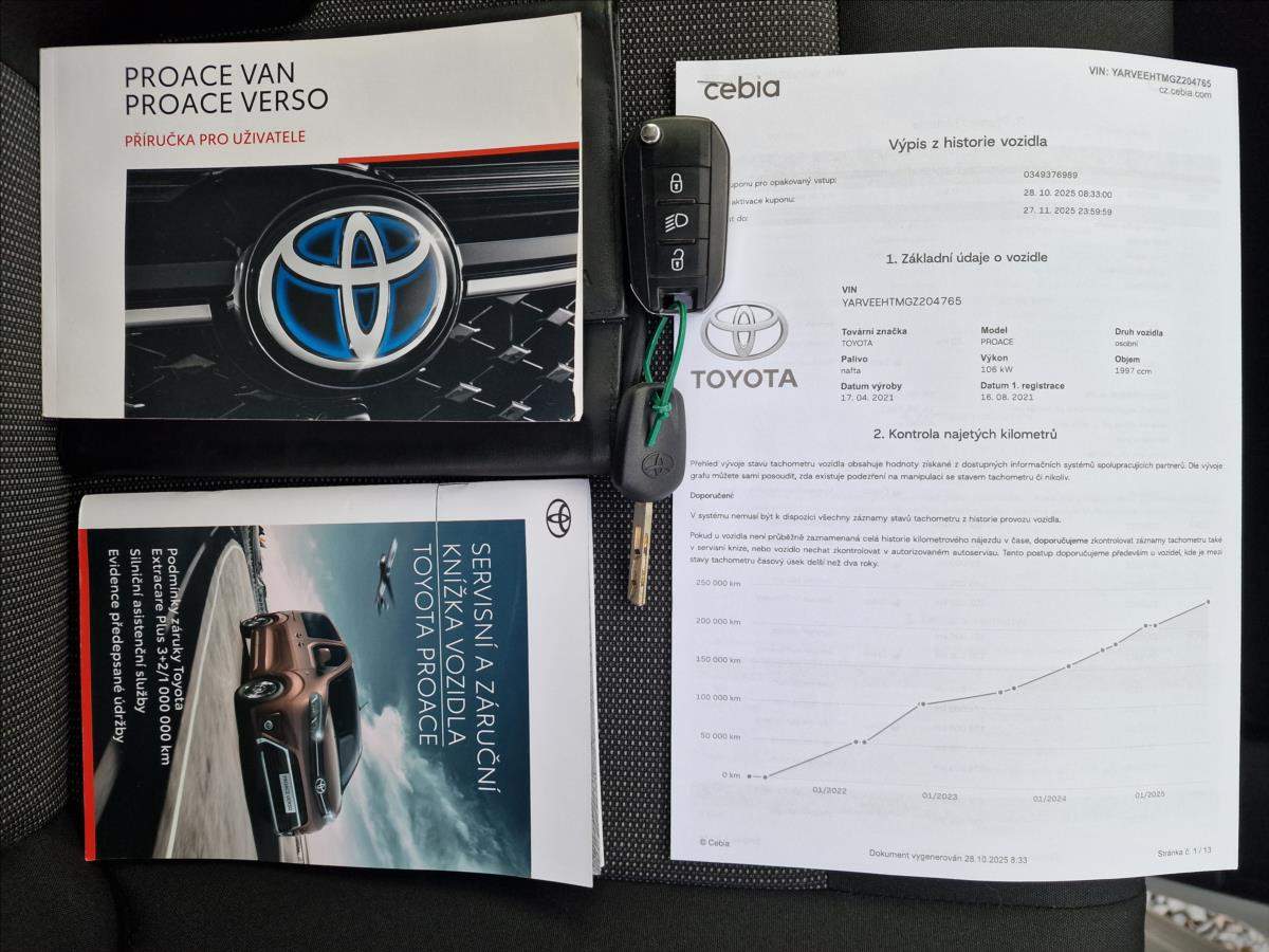 Možnost financování.; První majitel; Úvěr možný; Vozidlo původem z ČR; 1.Majitel; Servisní knížka; Pravidelný servis v autorizovaném servisu Toyota; Kompletně dohledatelná historie; Kompletní výpis Cebia; Auto v perfektním stavu; hezké zvenku i uvnitř; Prodloužená verze L2 - 9míst; Navíc sada kompletních zimních kol!;