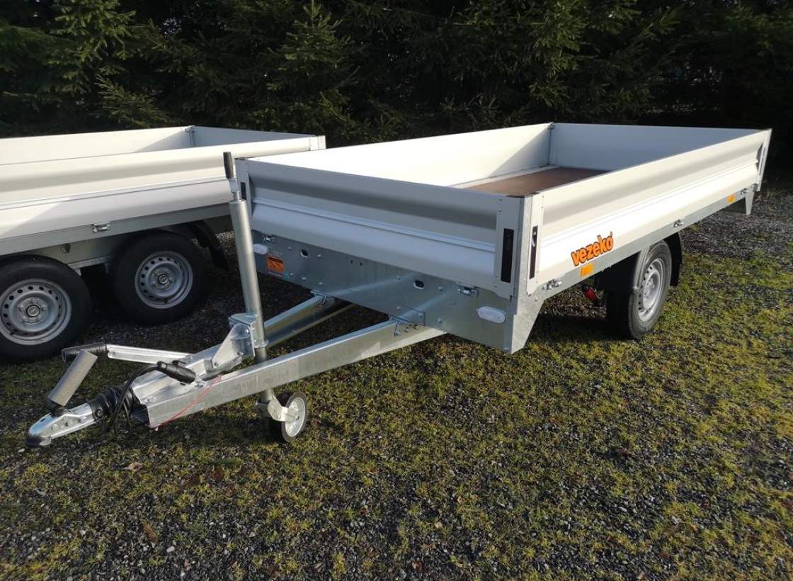 První majitel; NOVÝ jednonápravový brzděný přívěs. Celková hmotnost 1400 kg Zesílená náprava 1500 kg Brzděný nájezdovou brzdou Ložná plocha 3170 x 1620 mm Montovaný rám ze zinkovaných dílů Hliníkové bočnice otevíratelné 350 mm Podlaha z voděodolné protiskluzové překližky 15 mm Kotvící oka v rámu 8 ks Opěrné kolečko Zakládací klíny Kola 13' - 165 R 13C;;