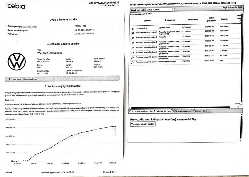 WV1ZZZ2HZKH008026 prověřit vozidlo online