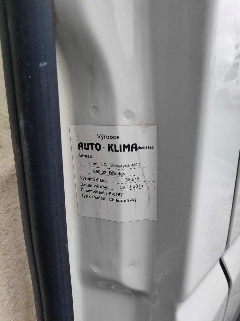Vůz po 1.majiteli kupovaný v ČR; jedná se o chladící vůz - v zadní části izolační vestavba a chladící zařízení; ovládání v kabině řidiče. Dále přídavné topení Webasto; parkovací senzory atd.. velmi pěkná výbava. Motoricky v pořádku - pravidelně servisováno. Údaje obsažené v této kartě mají informativní charakter. Tato indikativní nabídka není nabídkou ve smyslu § 1731 nebo § 1732 občanského zákoníku; ani se nejedná o veřejný příslib dle § 1733 občanského zákoníku. Z této indikativní nabídky nevzniká nárok na uzavření smlouvy. Vyhrazujeme si právo na opravu chyby změny cen. Tiskové chyby a změny ve vyobrazení vyhrazeny. Chyby v popisu vyhrazeny; platí vždy aktuální stav při prohlídce.;