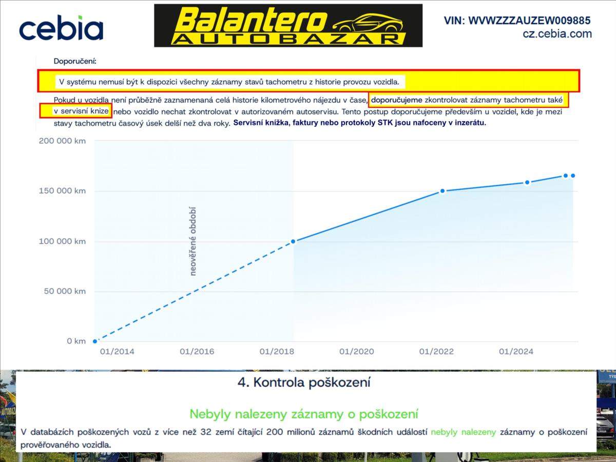 Spotřebitelský úvěr možný, NÍZKÉ SPLÁTKY, akontace od 0%, informujte se - 601 002 157. Prověřeno CEBIA. záruka PŮVODU a KILOMETRŮ.; Spotřebitelský úvěr možný; Perfektní stav; dovoz z Německa 2022; SERVISNÍ KNÍŽKA; teď nové rozvody; olej; filtry; svíčky; pěkné pneu; zánovní brzdy; orig.17' elektrony; polokůže; 2x PDC; parkpilot. Prověřeno CEBIA; protokol k dispozici; Záruka PŮVODU a KILOMETRŮ; VIN: WVWZZZAUZEW009885. Záruka PŮVODU a KILOMETRŮ. Kontakt: 601 002 157; rádi Vám poradíme. Nejedná se o návrh na uzavření smlouvy (nabídku) ve smyslu § 1731 a §1732 zákona č. 89/2012 Sb.; Občanského zákoníku. Společnost Balantero s.r.o. si vyhrazuje právo uzavření všech smluvních vztahů písemně.;