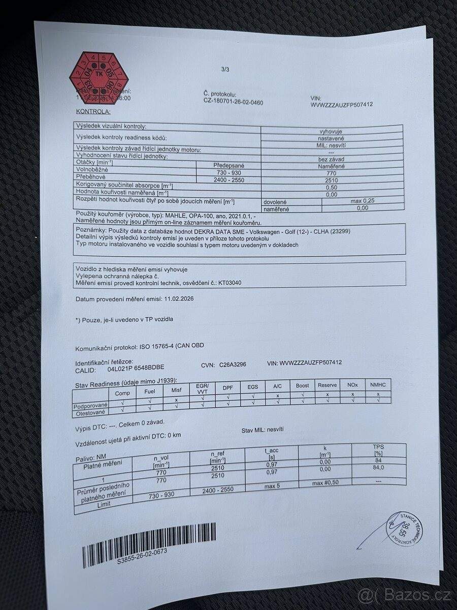 Druhý majitel; TEL: 602688990 OKR: OSTRAVA Prodám Volkswagen Golf 1.6 TDI 4Motion; r. v. 6/2014; do provozu 10/2014; najeto 123 616 km. Spolehlivý diesel s pohonem všech kol. Výbava zahrnuje ABS; ESP; ASR; EDS; asistent rozjezdu do kopce; tempomat a přední i zadní parkovací senzory. Nechybí alarm; dálkové centrální zamykání; imobilizér; el. okna a zrcátka (vyhřívaná a sklopná); senzor stěračů; senzor tlaku v pneumatikách; palubní počítač; digitální přístrojová deska; navigace a Bluetooth. Dělená zadní sedadla s ISOFIX; litá kola; střešní nosič; tónovaná skla; mlhovky a Start/Stop systém. Pravidelný servis (nové brzdy; rozvody; filtry); STK z 02/2026. Druhý majitel. Cena k jednání. Auto je denně v provozu. VIN: WVWZZZAUZFP507412. Tel. 602 688 990.;