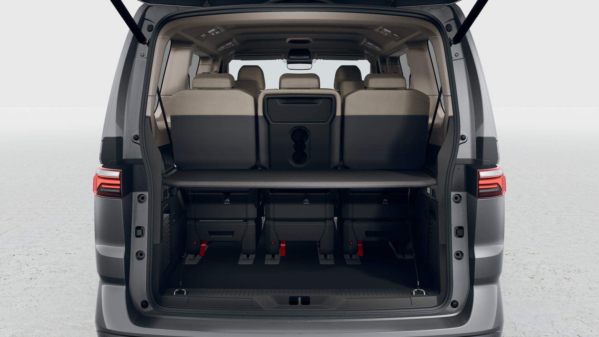 17' kola z lehké slitiny 'Dundrod': - černá-lesklá - pneumatiky 235/55 R17 103H XL s optimalizovaným valivým odporem - středové kryty kol - bezpečnostní šrouby; 7 míst (2+2+3) vis-a-vis: - 2 samostatná sedadla ve 2. řadě s možností umístění proti směru jízdy-bezpečnostní pásy jsou integrovány v sedadlech - loketní opěrky na obou stranách sedadel ve 2. řadě - 3 samostatná sedadla ve 3. řadě; Alarm s ochranou vnitřního prostoru: - centrální zamykání s možností odemčení pouze dveří řidiče - houkačka - senzor naklonění vozu; Asistenční systémy 'Travel Assist': - asistent udržení jízdního pruhu Lane Assist s Emergency Assist; Bez TZ - dodatečná informace: - vůz bez tažného zařízení nebo přípravy pro tažné zařízení - vzhledem k nově platným bezpečnostním standardům nemůže výrobce Volkswagen Užitkové vozy zaručit dodatečnou montáž tažného zařízení v případě; že vůz nebyl z výroby dodán s přípravou pro tažné zařízení nebo přímo s tažným zařízením; Keyless entry/start: - centrální zamykání s funkcí bezklíčkového zamykání a odemykání - bezklíčkové zapalování; Klimatizace 'Climatronic': - 3zónová automatická klimatizace s dalším ovládacím panelem v prostoru pro cestující; LED světlomety vpředu (IQ.LIGHT): - světlomety IQ.LIGHT LED Matrix - automatické nastavení sklonu - Dynamic Light Assist (automatické přepínání mezi potkávacím a dálkovým svícením); - LED světlomety pro špatné počasí s funkcí přisvěcování do zatáček Multifunkční kožený volant-vyhřívaný; Multifunkční stolek: - samostatné vodicí drážky - držáky nápojů - posuvný po celé délce vnitřního prostoru; Paket 'Easy Open & Close': - boční posuvné dveře vlevo i vpravo elektricky ovládané - zadní výklopné dveře elektricky ovládané se servodovíráním - funkce Easy Open & Close - servodovírání; Volba jízdních režimů; Vyhřívané čelní sklo: - akustické - tepelně izolující; Vyhřívání předních sedadel: - odděleně nastavitelné; Zpětná kamera s funkcí 'Area View': - kamerový systém pro snímání přímého okolí vozu - Park Assist a parkpilot vpředu a vzadu; ZDARMA - Prodloužená záruka 2+3/200 000km; Jedná se o vůz k zadání do výroby s předběžným termínem dodání 03/2026 více informací: Marcel Huňka - tel.: +420778965560 - e-mail: marcel.hunka@eurocarzlin.cz; 394082;