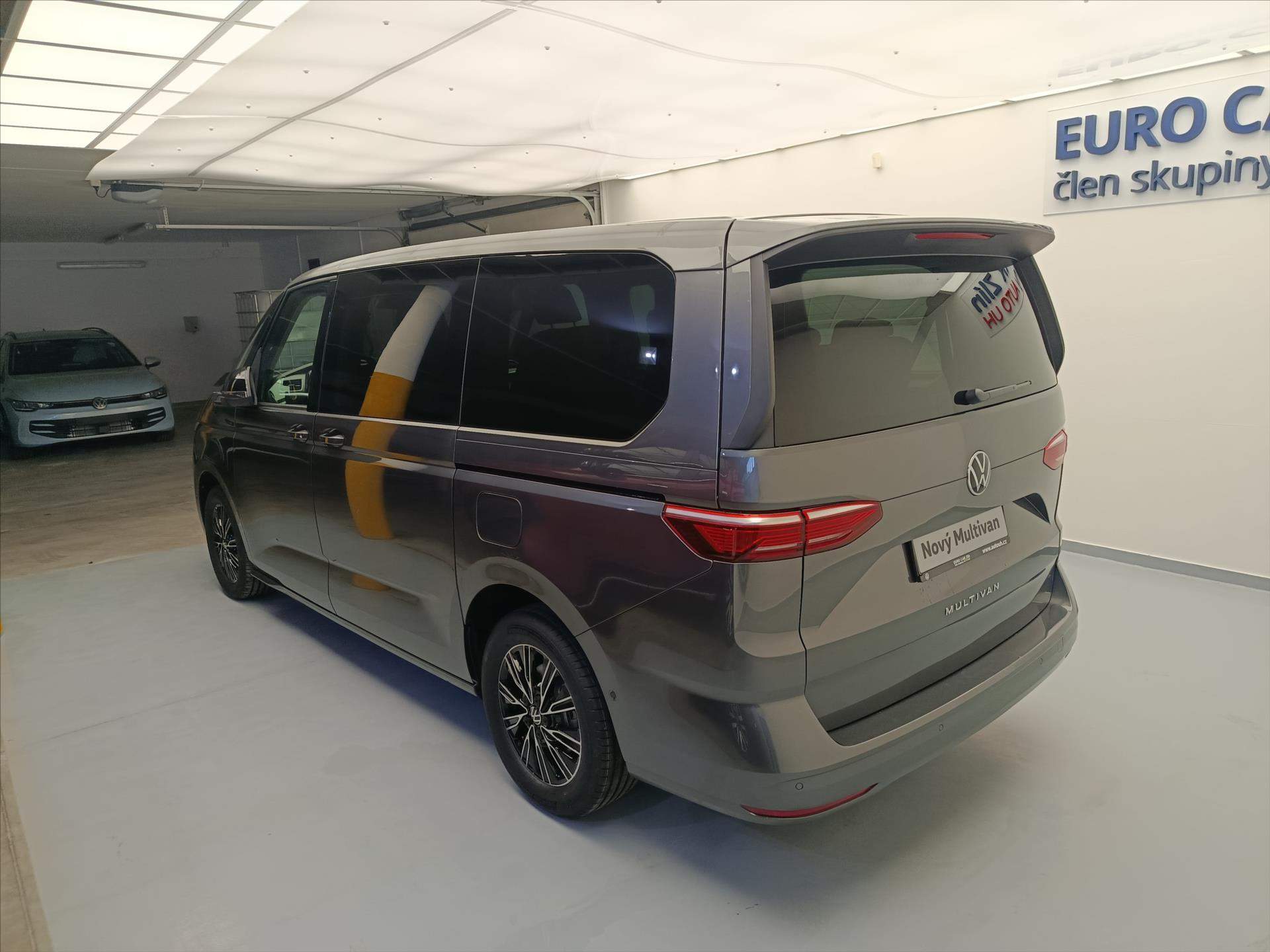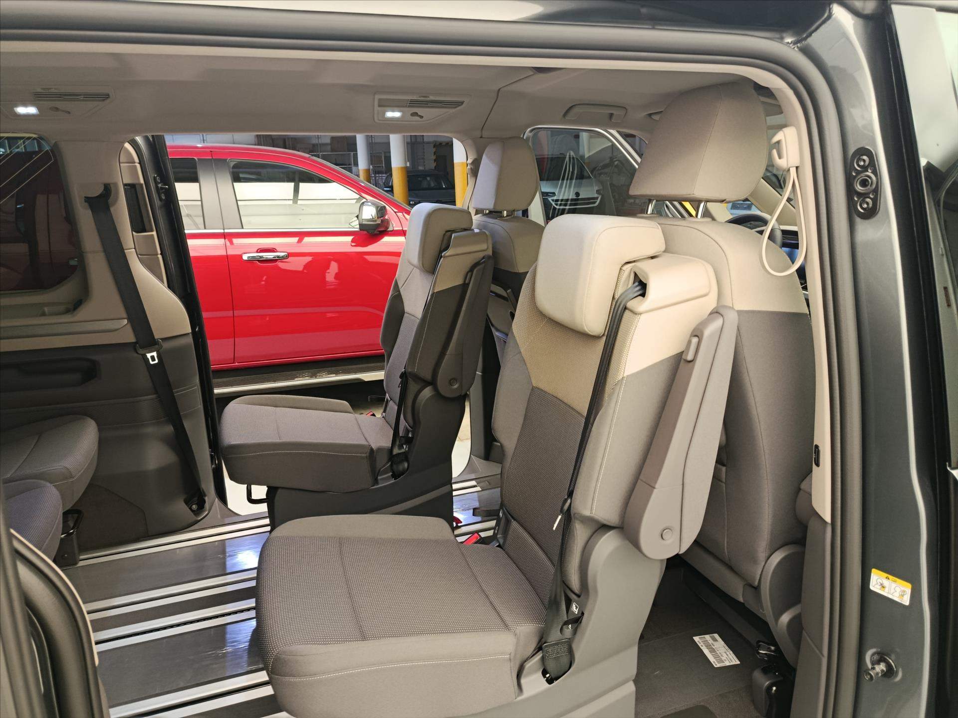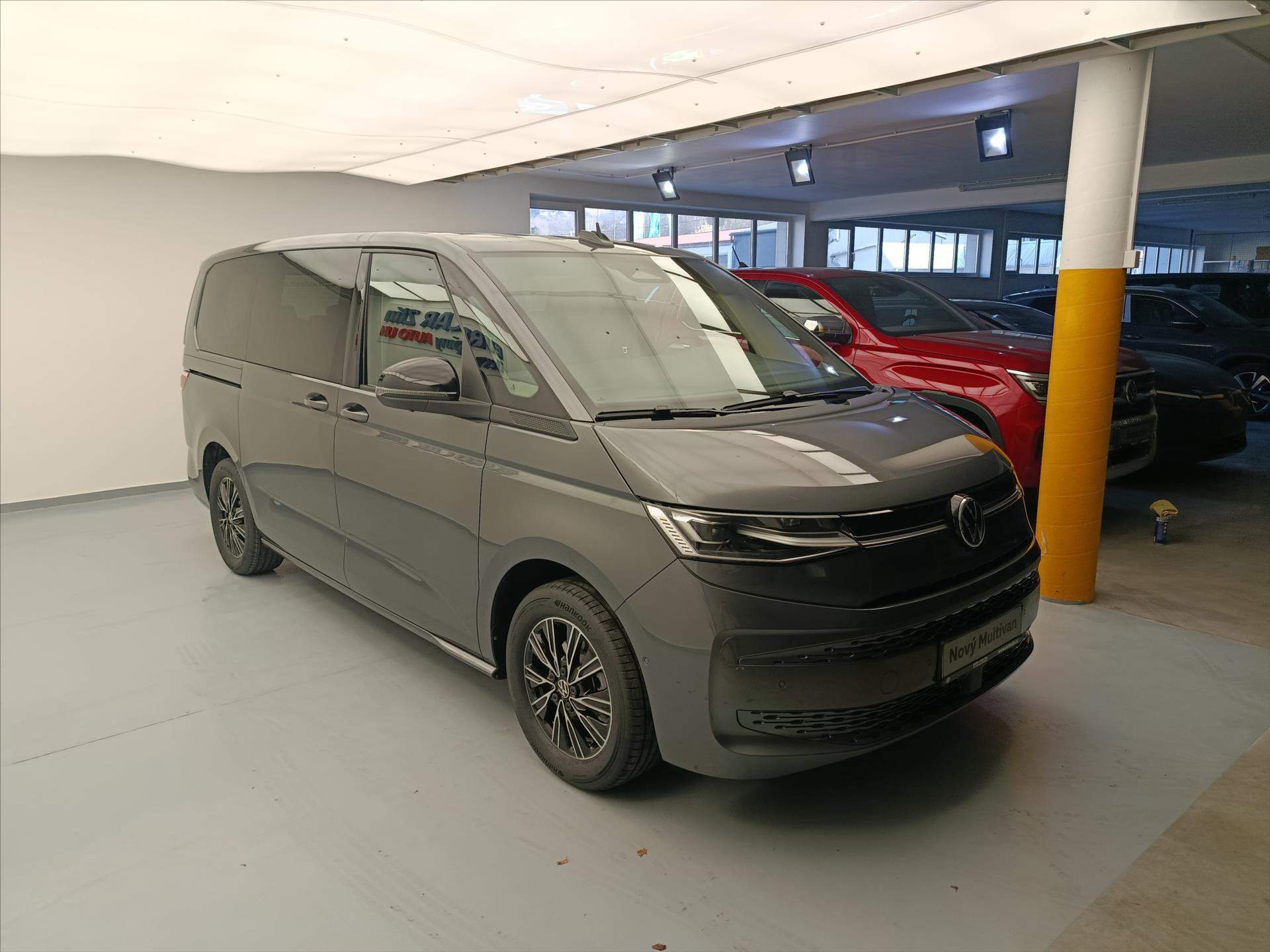 17' kola z lehké slitiny 'Dundrod': - černá-lesklá - pneumatiky 235/55 R17 103H XL s optimalizovaným valivým odporem - středové kryty kol - bezpečnostní šrouby; 7 míst (2+2+3) vis-a-vis: - 2 samostatná sedadla ve 2. řadě s možností umístění proti směru jízdy-bezpečnostní pásy jsou integrovány v sedadlech - loketní opěrky na obou stranách sedadel ve 2. řadě - 3 samostatná sedadla ve 3. řadě; Alarm s ochranou vnitřního prostoru: - centrální zamykání s možností odemčení pouze dveří řidiče - houkačka - senzor naklonění vozu; Asistenční systémy 'Travel Assist': - asistent udržení jízdního pruhu Lane Assist s Emergency Assist; Bez TZ - dodatečná informace: - vůz bez tažného zařízení nebo přípravy pro tažné zařízení - vzhledem k nově platným bezpečnostním standardům nemůže výrobce Volkswagen Užitkové vozy zaručit dodatečnou montáž tažného zařízení v případě - že vůz nebyl z výroby dodán s přípravou pro tažné zařízení nebo přímo s tažným zařízením; Keyless entry/start: - centrální zamykání s funkcí bezklíčkového zamykání a odemykání - bezklíčkové zapalování; Klimatizace 'Climatronic': - 3zónová automatická klimatizace s dalším ovládacím panelem v prostoru pro cestující; LED světlomety vpředu (IQ.LIGHT): - světlomety IQ.LIGHT LED Matrix - automatické nastavení sklonu - Dynamic Light Assist (automatické přepínání mezi potkávacím a dálkovým svícením); - LED světlomety pro špatné počasí s funkcí přisvěcování do zatáček Multifunkční kožený volant-vyhřívaný; Multifunkční stolek: - samostatné vodicí drážky - držáky nápojů - posuvný po celé délce vnitřního prostoru; Paket 'Easy Open & Close': - boční posuvné dveře vlevo i vpravo elektricky ovládané - zadní výklopné dveře elektricky ovládané se servodovíráním - funkce Easy Open & Close - servodovírání; Volba jízdních režimů; Vyhřívané čelní sklo: - akustické - tepelně izolující; Vyhřívání předních sedadel: - odděleně nastavitelné; Zpětná kamera s funkcí 'Area View': - kamerový systém pro snímání přímého okolí vozu - Park Assist a parkpilot vpředu a vzadu; ZDARMA - Prodloužená záruka 2+3/200 000km; Jedná se o vůz zadaný do výroby s předběžným termínem dodání 03/2026; Při využití financování vozu u VWFS (ŠkoFIN) možnost získání současně velmi příznivého akčního úroku a ZDARMA servisní balíček na 5 let/90 000 km (celková cena 46 330Kč); Více informací Marcel Huňka +420778965560 marcel.hunka@eurocarzlin.cz; 394082;