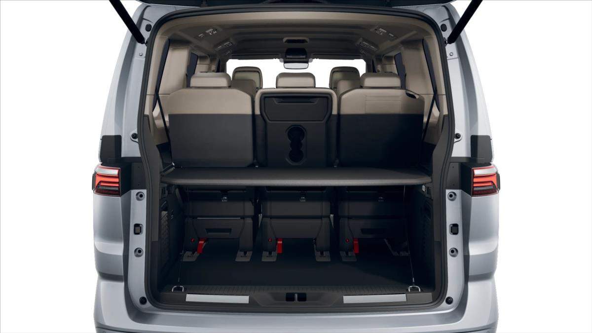 https://marketplace.vw-uzitkove.cz/search/car-sheet/L-2025-0391317-CZ/tyre-label-sheet; Sedadla vpředu el. nastavitelná I - sedadla vpředu 'AGR' ErgoComfort - elektricky nastavitelná - 4 polohy hlavové opěrky - funkce paměti nastavení sedadla - masážní funkce sedadla řidiče - dvoubarevné potahy 'ArtVelour' (microfleece); Přídavné topení s dálkovým ovládáním - programovatelné se spínacími hodinami a s dálkovým ovládáním - funkce ventilace interiéru; Adapt. podvozek DCC (standardní) - adaptivní regulace podvozku DCC - standardní podvozek - možnost volby jízdních režimů; Tažné zařízení sklopné el. pojistka; Paket 'Easy Open & Close' - boční posuvné dveře vlevo i vpravo elektricky ovládané - zadní výklopné dveře elektricky ovládané se servodovíráním - funkce Easy Open & Close - servodovírání; Multifunkční stolek - samostatné vodicí drážky - držáky nápojů - posuvný po celé délce vnitřního prostoru; Zatmavená skla v prostoru pro cestující - tepelně izolační skla v bočních oknech v kabině řidiče - prosklení Privacy (absorbce až 65% světla) v prostoru pro cestující; 18' kola z lehké slitiny 'Toshima' - černá - pneumatiky 235/50 R18 101H XL s optimalizovaným valivým odporem - středové kryty - bezpečnostní šrouby; Asistenční systémy 'Travel Assist' - asistent udržení jízdního pruhu Lane Assist s Emergency Assist; 7 míst (2+2+3) vis-a-vis - 2 samostatná sedadla ve 2. řadě s možností umístění proti směru jízdy; bezpečnostní pásy jsou integrovány v sedadlech - loketní opěrky na obou stranách sedadel ve 2. řadě - 3 samostatná sedadla ve 3. řadě; Zpětná kamera s funkcí 'Area View' - kamerový systém pro snímání přímého okolí vozu - Park Assist a parkpilot vpředu a vzadu; Vyhřívané čelní sklo - akustické - tepelně izolující; Multifunkční kožený volant vyhřívaný; 4 funkční klíče; Keyless entry/start - centrální zamykání s funkcí bezklíčkového zamykání a odemykání - bezklíčkové zapalování; \391317;