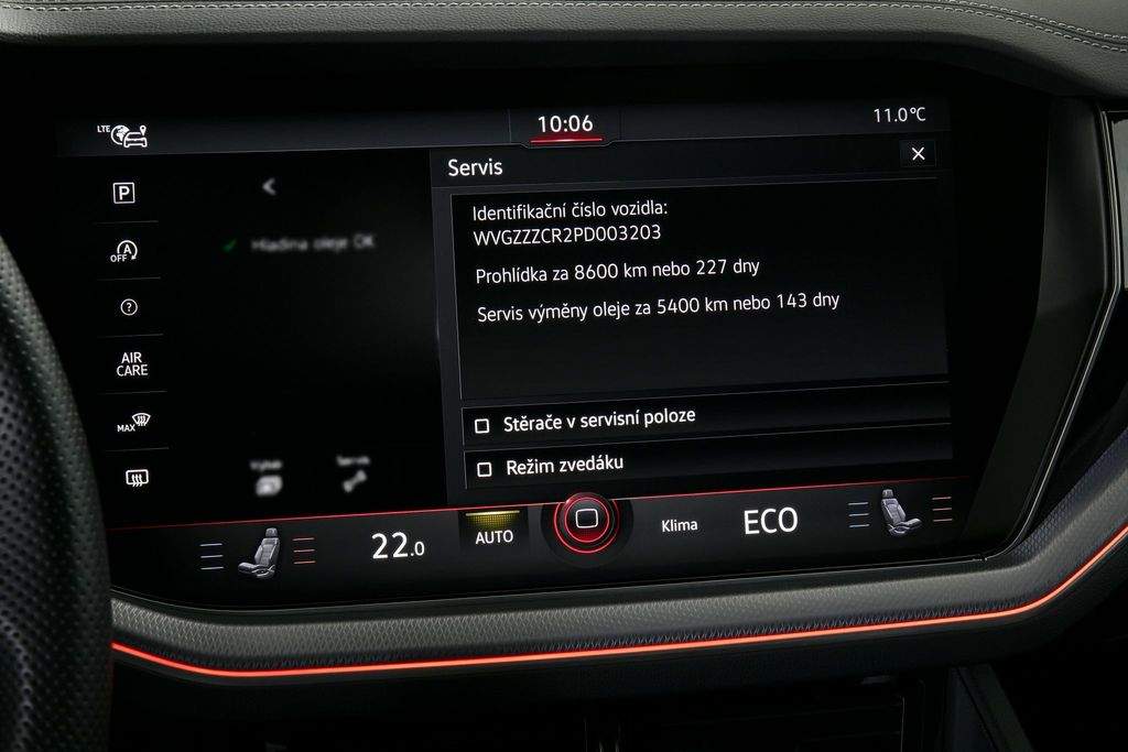 VIN WVGZZZCR2PD003203. Vozidlo od autorizovaného dealera Volkswagen; původem z Německa po 1. majiteli. Servis pouze v autorizovaném servisu Volkswagen doložitelný servisní knihou. Garance počtu najetých km a původu v kupní smlouvě. K vozu veškerá palubní dokumentace; servisní kniha; 2x klíč od vozidla. Výbava R-Line; Interiér v kůži Savona; IQ LIGHT - LED Matrix světlomety; Panoramatické střešní okno; Originální tažné zařízení; Nezávislé topení Webasto s DO; Vzduchové pérování se zadní natáčecí nápravou; Emergency Assist a asistent pro jízdu v koloně; Head-up displej; Area View - 360° kamera; Night vision - Asistent nočního vidění; El. nastavitelná ergoComfort sedadla s masáží a pamětí; Sound system Dynaudio; El. nastavitelný a vyhřívaný volant; Vyhřívaná přední i zadní sedadla; Ventilovaná přední sedadla; Čtyřzónová automatická klimatizace; Navigace Discover Premium; Android Auto; Apple CarPlay; Originální litá kola R21. MOŽNÝ ODPOČET DPH.;
