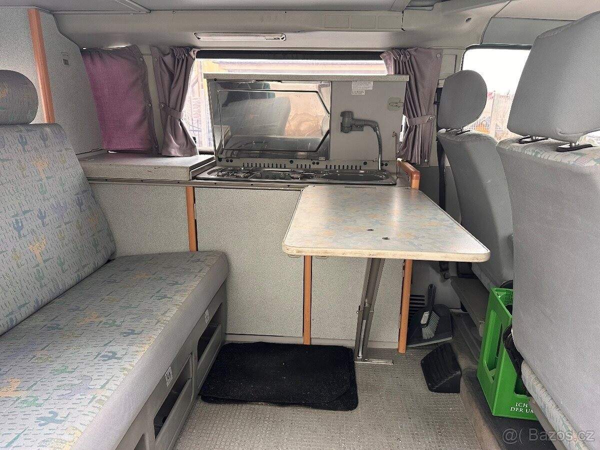 TEL: 778751836 OKR: ZNOJMO Prodám Volkswagen T4 Westfalia; rok výroby 1996; s motorem 1.9 TD (1896 cm3). Jedná se o originální obytnou vestavbu Westfalia; vše plně funkční. Vůz má najeto 470 000 km; je však ve velmi dobrém stavu. Karoserie je vyvařená a opravená; vůz je také čerstvě po výměně rozvodů. Auto je udržované a připravené na další používání. Výbava Westfalia • zvedací střecha s možností spaní • nezávislé topení • vestavěný vařič • nádrž na vodu • lednice • zásuvky 12 V / 220 V • otočná přední sedadla • dvě baterie (startovací + trakční pro obytnou část) Další výbava • tažné zařízení • držák na kola • dvě sady kol (letní + zimní) Jedná se o legendární camper Westfalia; spaní až pro 4 osoby (2 dole + 2 ve zvedací střeše). Při rychlém a seriózním jednání je možná dohoda o ceně.;