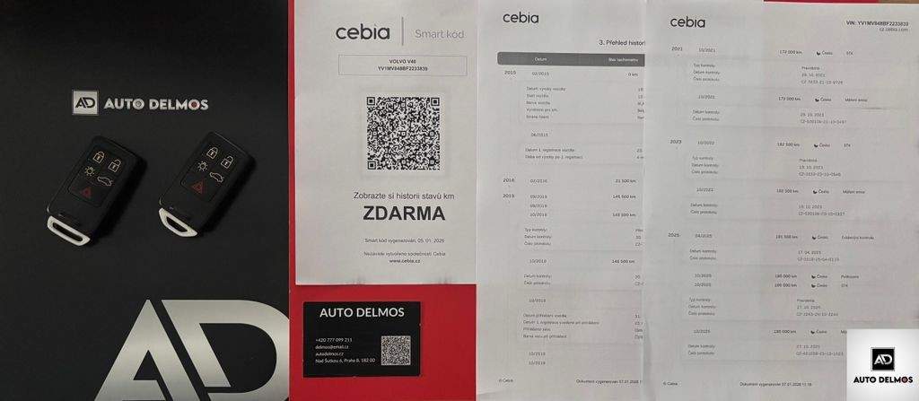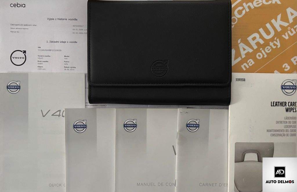 VIN:YV1MV848BF2233839 -Volvo V40--D2/2016/AT-OCEAN RACE-ZÁRUKA24 MĚS- Vůz po 2. majiteli; servisní kniha -Pravidelný servis v síti autorizovaných servisů VOLVO veden po celou dobu provozu - PO SERVISU V 195.000 KM 10/2025; možnost výhodného financování vozu a prodloužené záruky. Certifikát najetých kilo; roku výroby a původu vozu od nezávislé společnosti CEBIA; DEKRA; VOLVO AUTO. Udržovaný a zachovalý stav. MOŽNOST PRODLOUŽENÉ ZÁRUKY . nabídka není nabídkou ve smyslu §1731 nebo §1732 občanského zákoníku; ; model 2016-CEBIA-Kód kuponu: 3272335517---https://cz.cebia.com/?s_coupon=3272335517--KŮŽE NAVI ATD....SADA LETNÍCH PNEU;