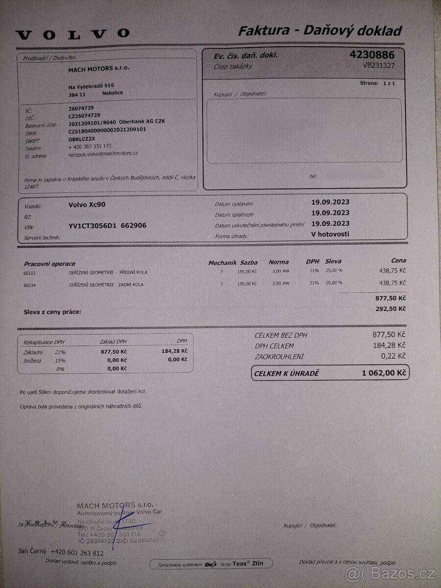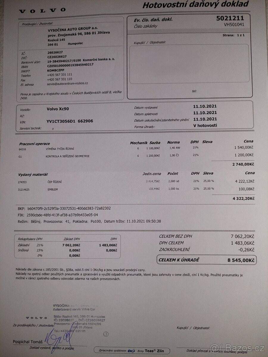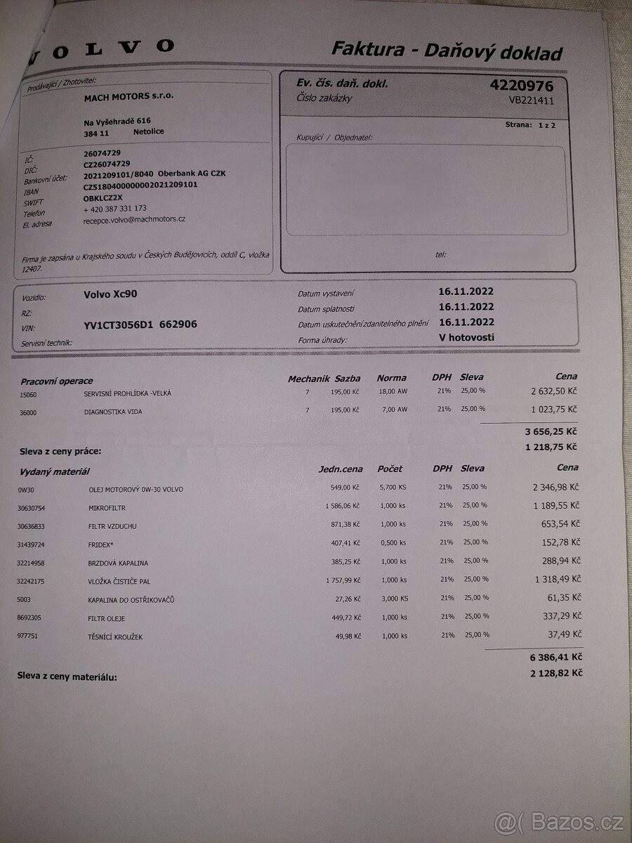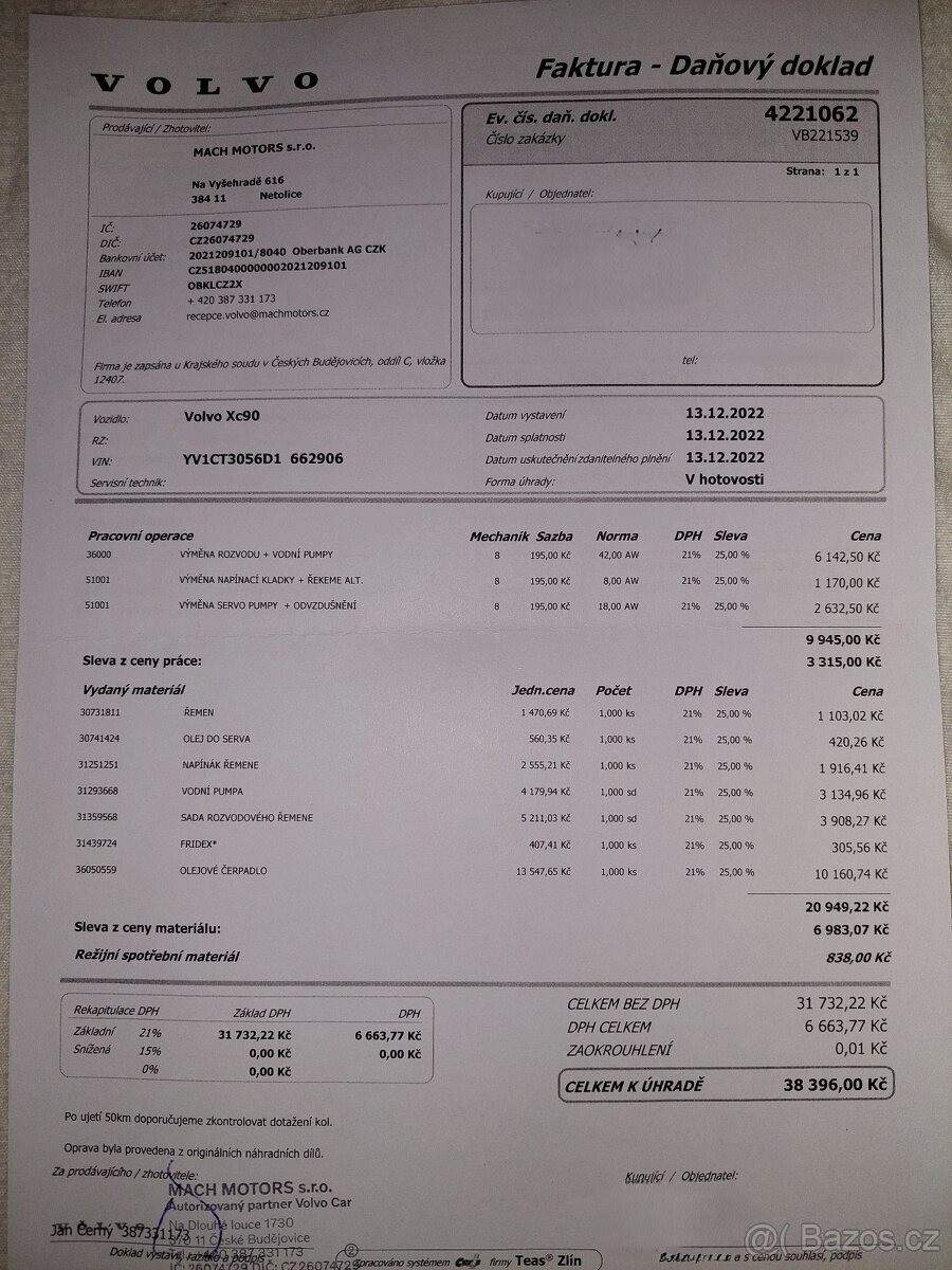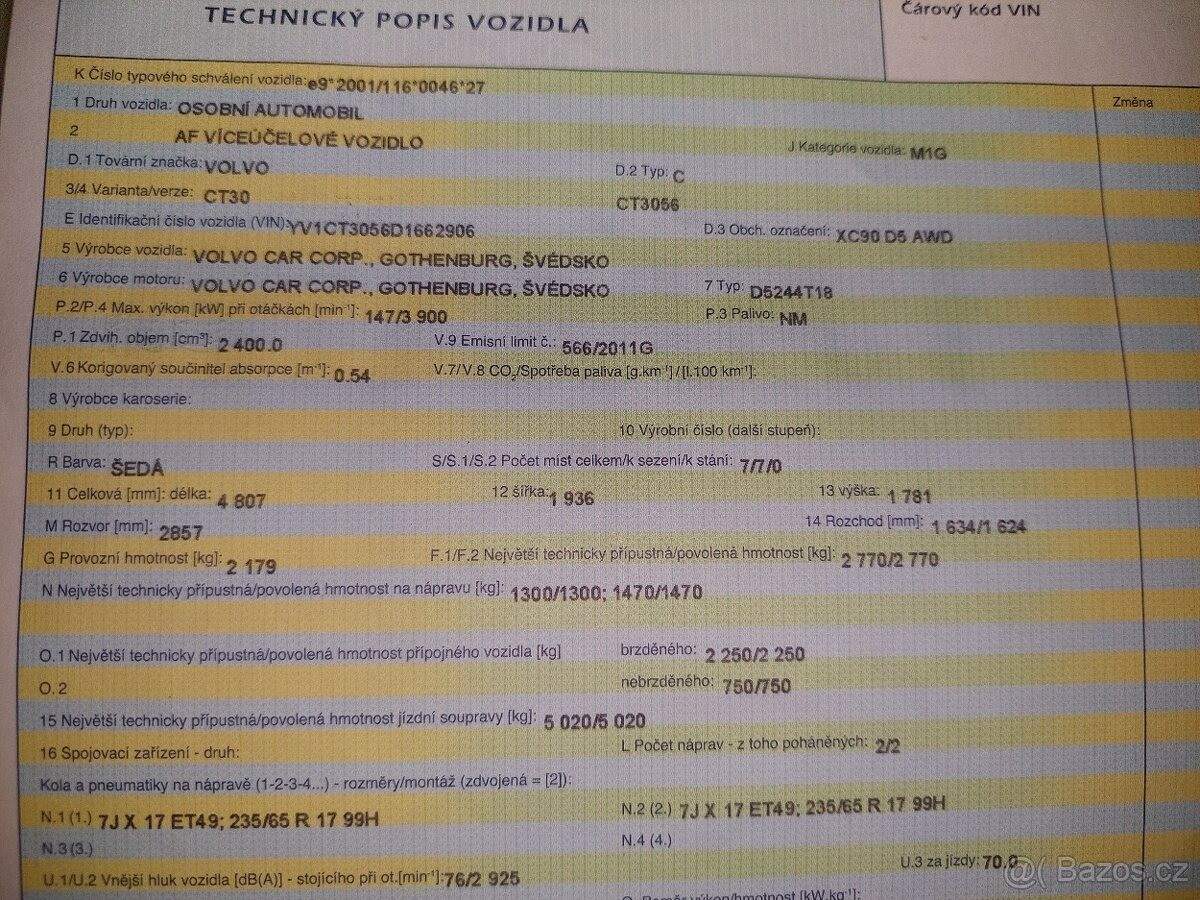 TEL: 776114718 OKR: JINDŘICHŮV HRADEC Prodám velmi zachovalé (vzhledem ke stáří) Volvo XC90 AWD R-Design se spolehlivým motorem 2.4 D5 (147 kW); 7místné. VIN: YV1CT3056D1662906 Nájezd: cca 255 000 km (auto je stále v provozu) 1. registrace: 7.1.2013 Registrace v ČR: 25.11.2020 (od té doby jsem majitelkou) Garážované: posledních 5 let STK: platná do 25.11.2026 Výbava a stav: Automatická převodovka Pohon všech kol (AWD) Vyhřívaná přední sedadla Aktuálně na zimních pneu; navíc k vozu sada letních pneumatik po jedné sezóně Chybí krytka ostřikovače předního světlometu; viz foto - sháním náhradní. Servis: Přikládám kopie faktur z autorizovaného servisu za dobu mého vlastnictví 12/2025 provedena výměna převodového oleje a žhavicích svíček. 01/2026 při 255tis km provedena výměna motorového oleje. Důvod prodeje: V rodině již nevyužijeme druhé auto s dieselovým motorem. Jedná se však o velmi spolehlivý vůz; se kterým se budu jen těžko loučit.;