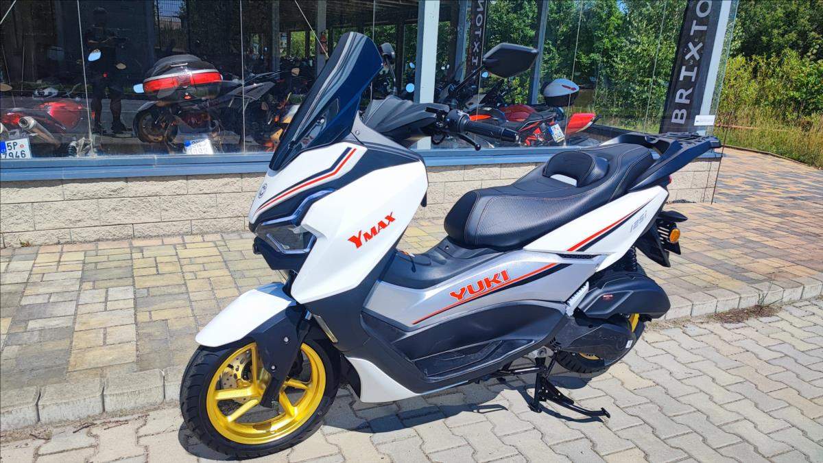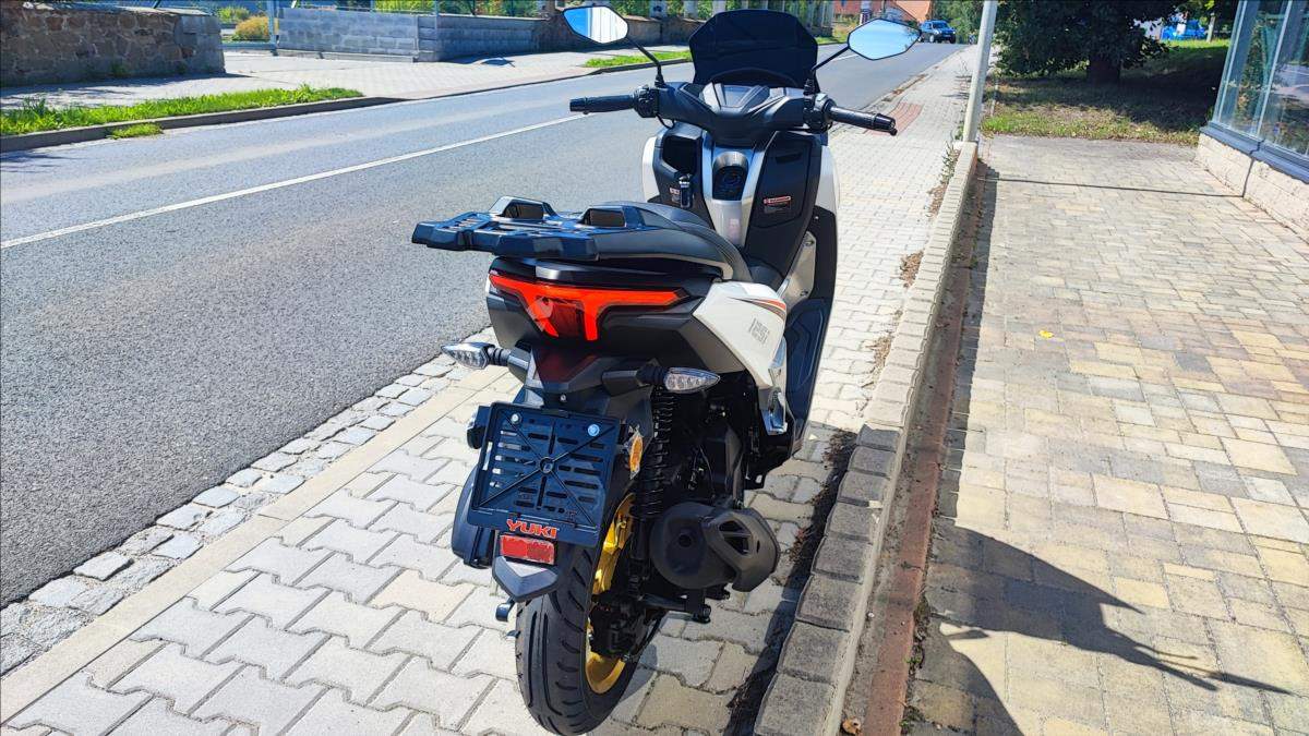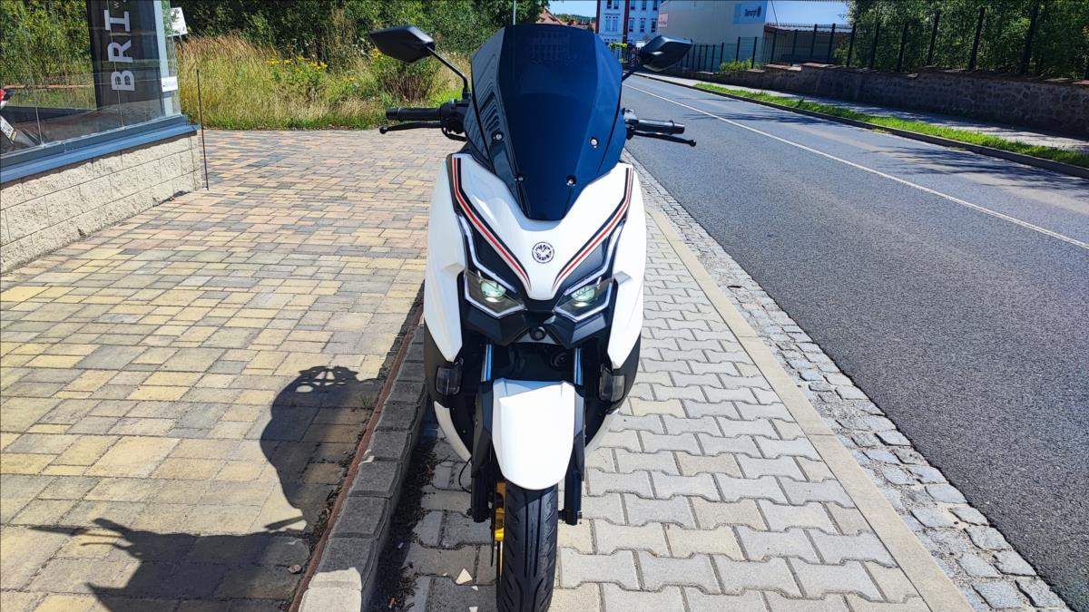 Nový skútr s plnou zárukou a perfektní výbavou; kamera; TFT s navigaci a zrcadlením telefonu; bezklíčková technologie; ABS; TC; LED světla; start-stop system. Nosič kufru ve výbavě.;