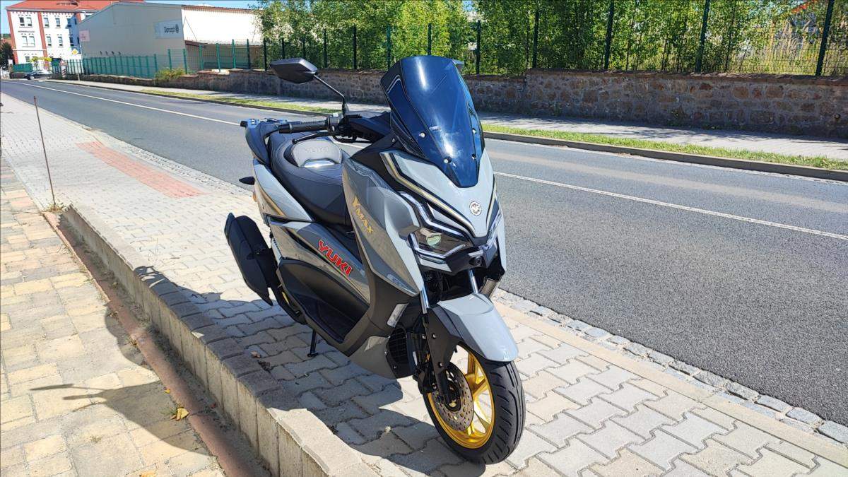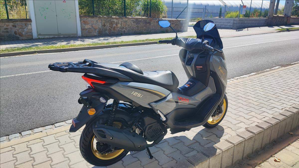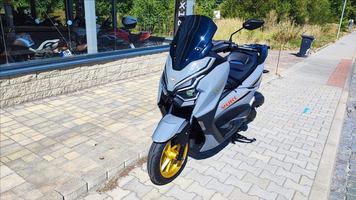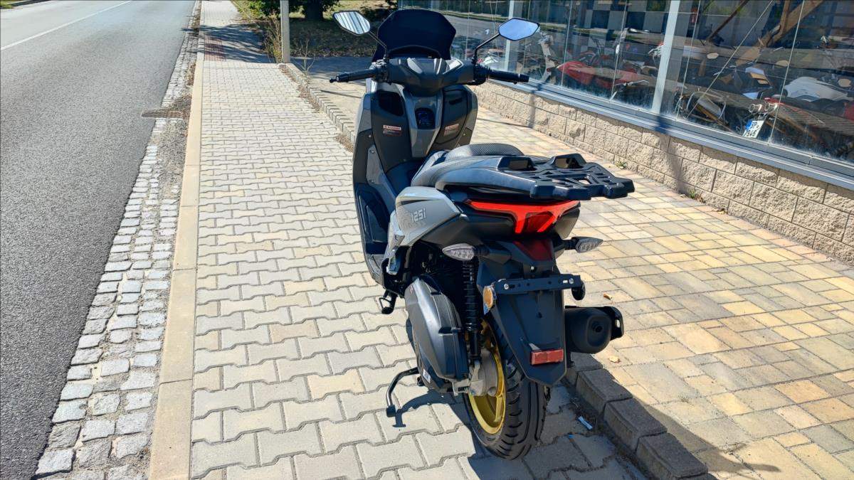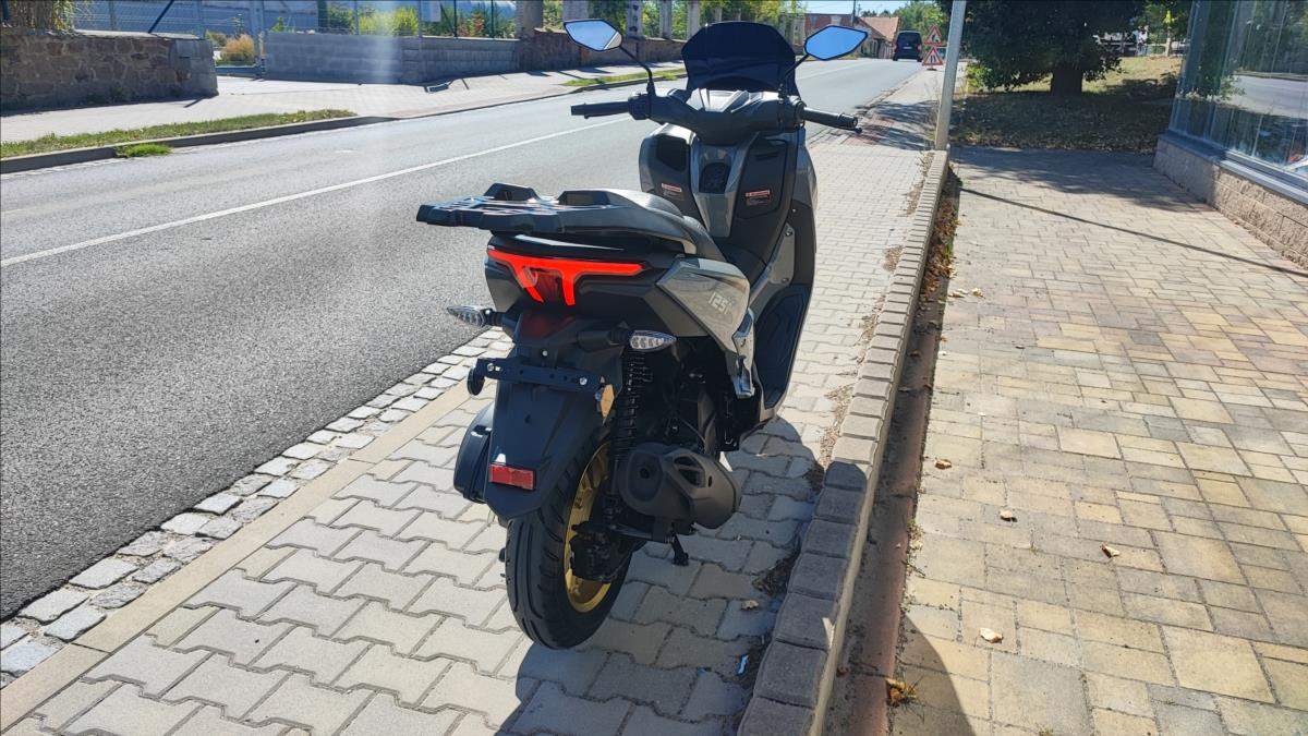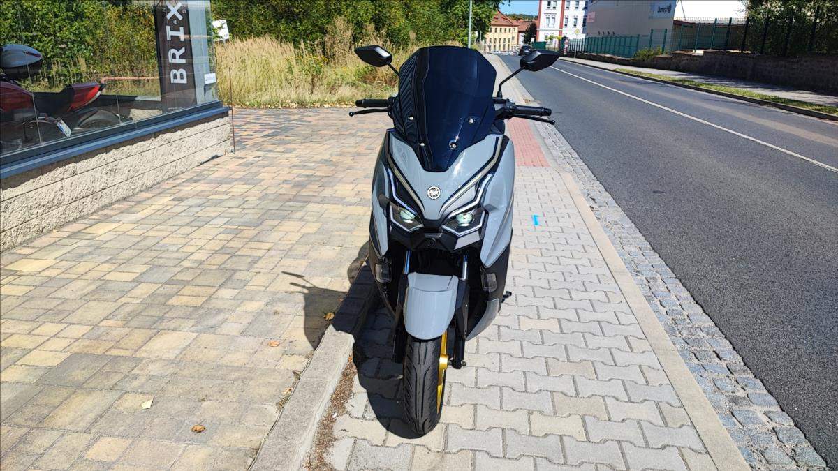 Nový skútr s plnou zárukou a perfektní výbavou; kamera; TFT s navigaci a zrcadlením telefonu; bezklíčková technologie; ABS; TC; LED světla; start-stop system. Nosič kufru ve výbavě.;