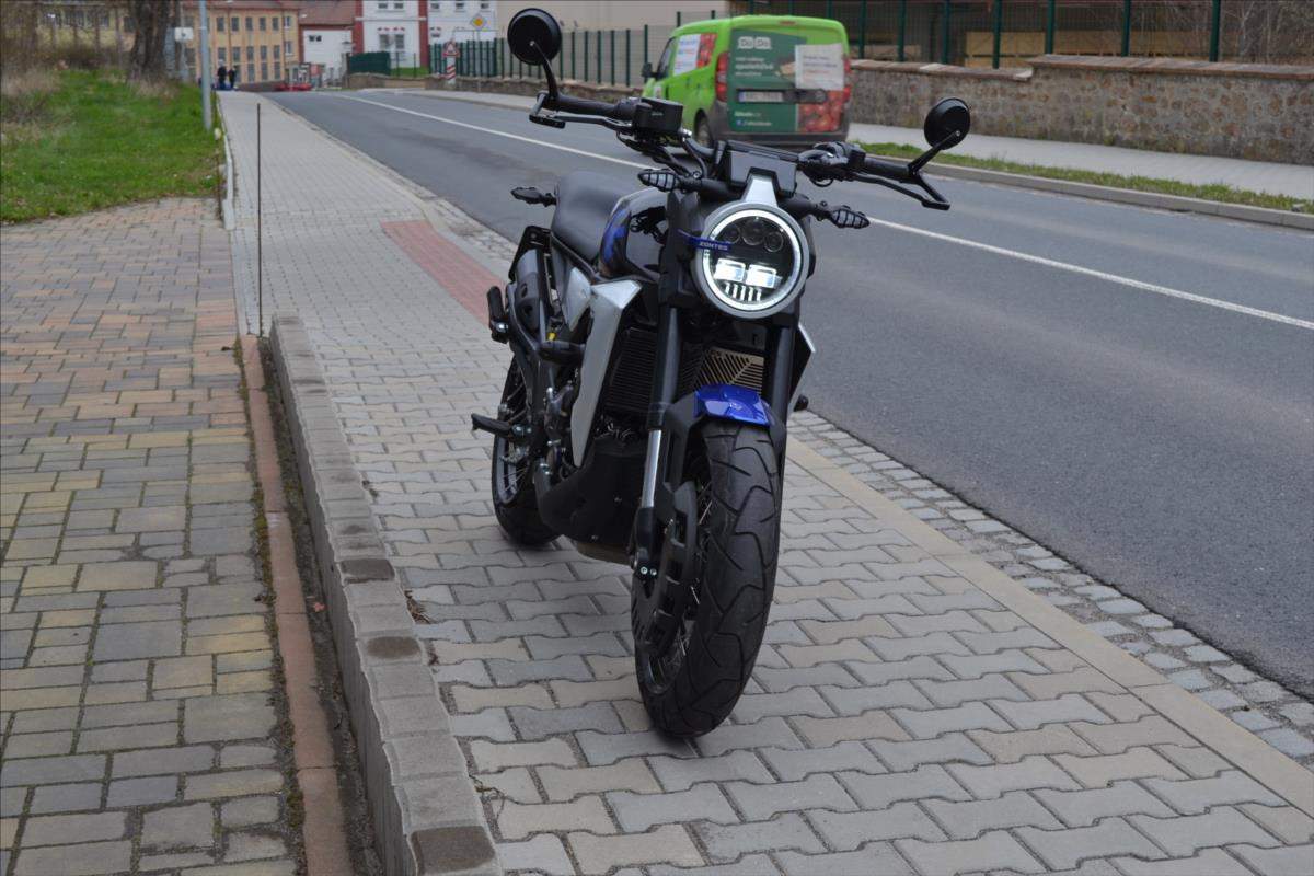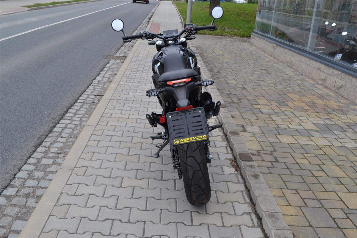 Moderní Scrambler / Sportscafe s bez-klíčovým systémem (dosah 1; 5 m) nové generace; dvěma jízdními režimy Eco a Sport; 17 litrovou nádrží; plně barevným TFT displejem; kompletním LED osvětlením; rychlo-nabíjecím USB portem; jednodílnými kovanými chrániči rukou z hliníkové slitiny; podsvícenými ovladači na řídítkách a vylepšeným tlumením podvozku.;